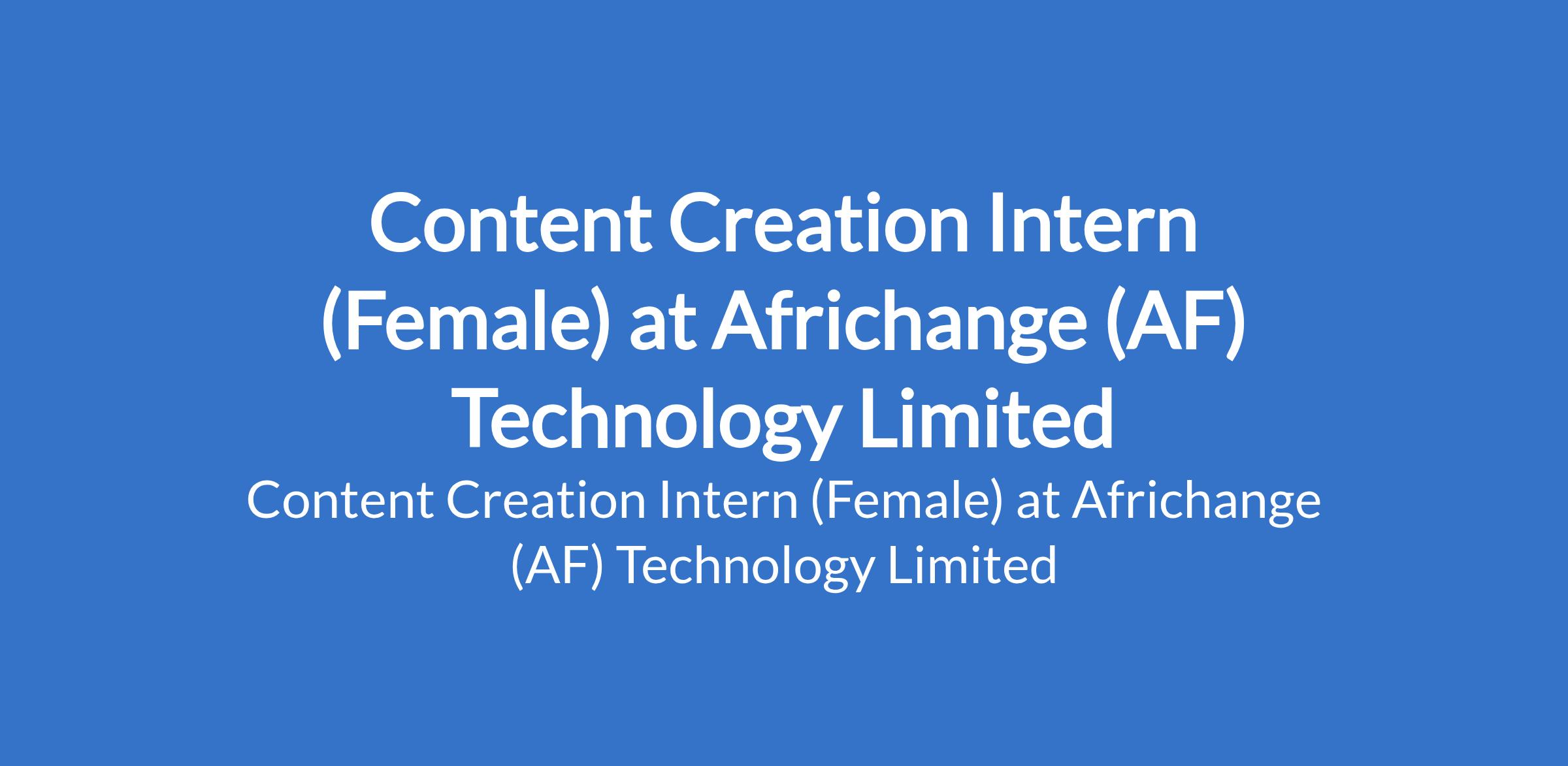 Africhange (AF) Technology Limited is recruiting to fill the position of: Content Creation Intern (Female). This is a Remote Job. Interested candidates must be a Fresh graduate or must have 0-2 years of experience in content creation, media, communications, or a related field.