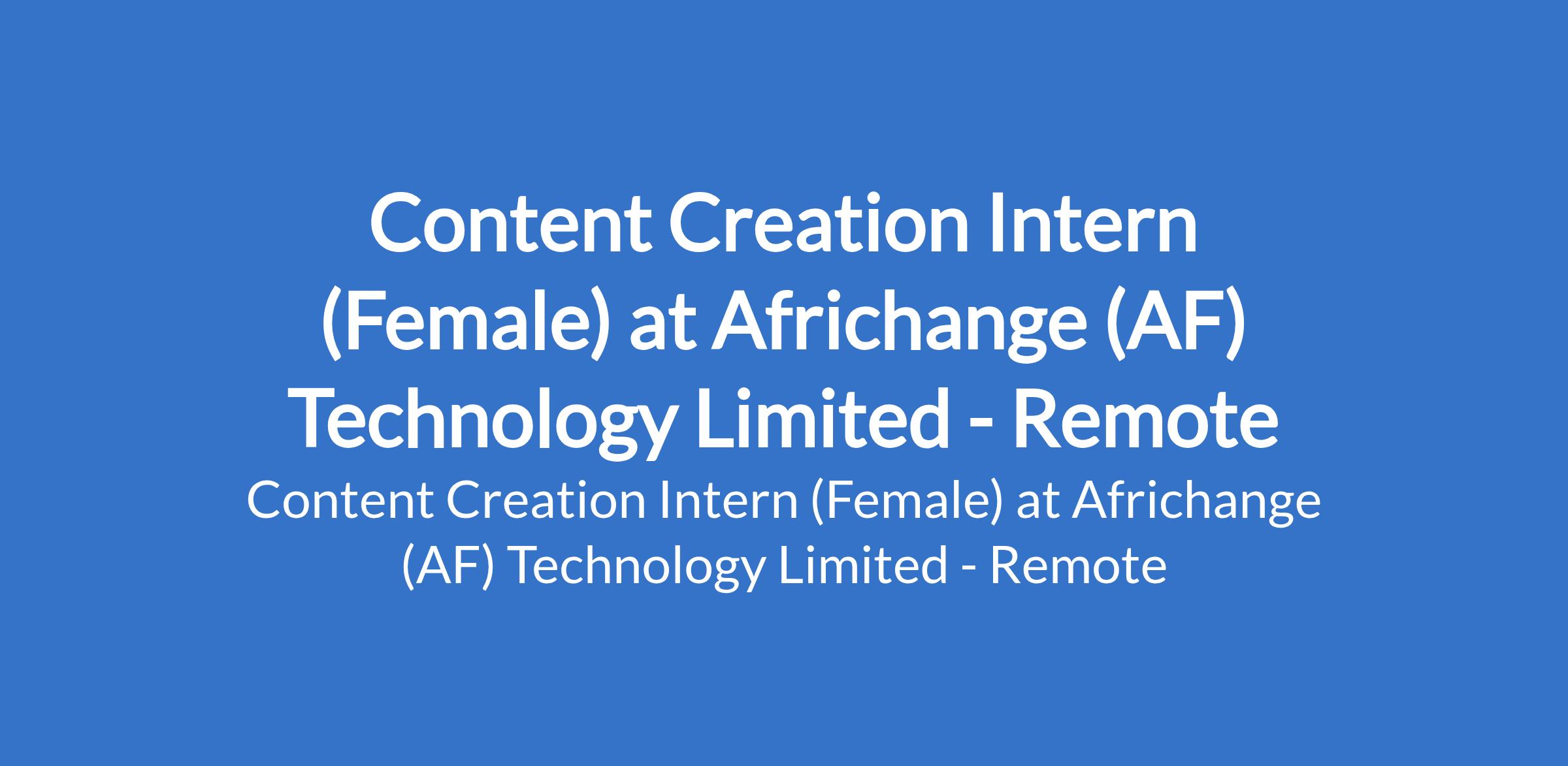 Africhange (AF) Technology Limited is recruiting to fill the position of: Content Creation Intern (Female). This is a remote job. Interested candidates should be Fresh graduates or possess 0 - 2 years of experience in content creation, media, communications, or a related field.
