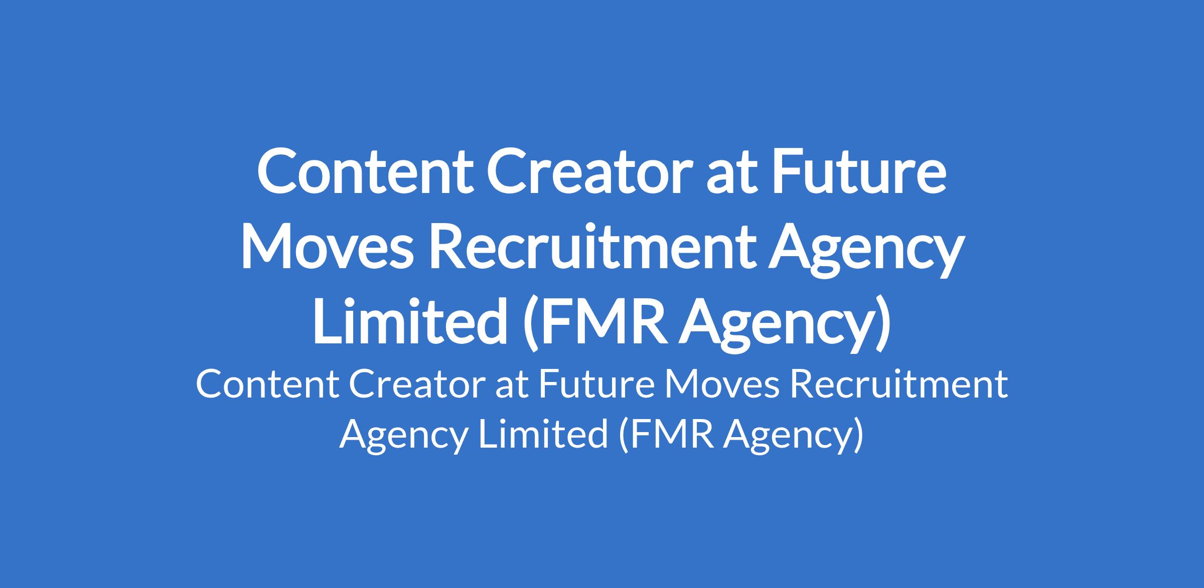 Future Moves Recruitment Agency Limited (FMR Agency) - Our client is recruiting to fill the position of: Content Creator. The position is located in Alagomeji, Yaba - Lagos State. Salary: N150,000 - N200,000 monthly. Interested candidates should possess a Bachelors Degree with 2 - 3 years experience.