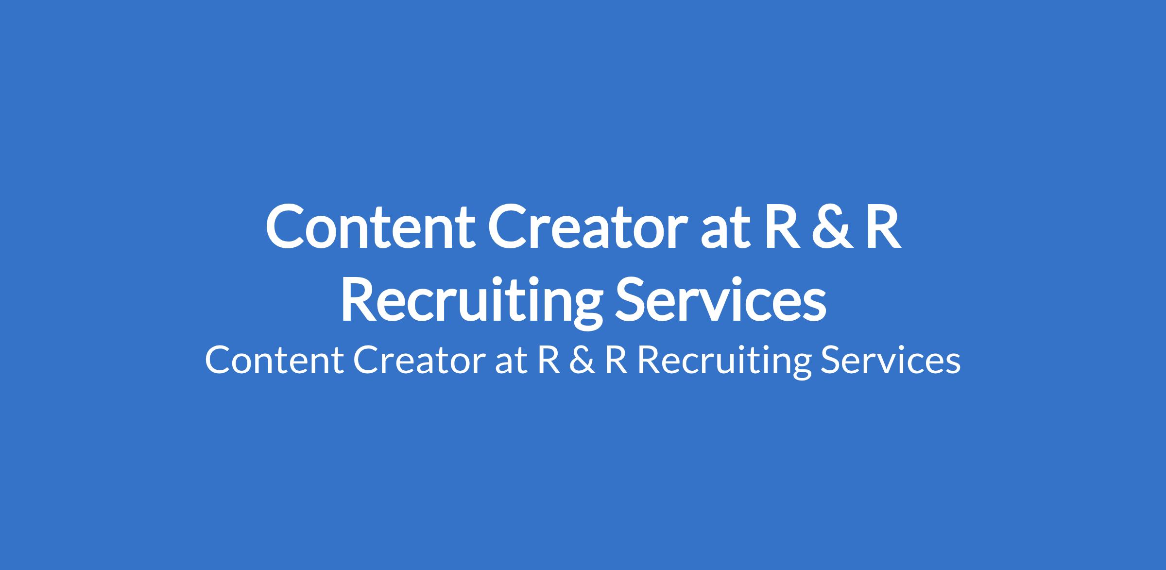 Content Creator at R & R Recruiting Services