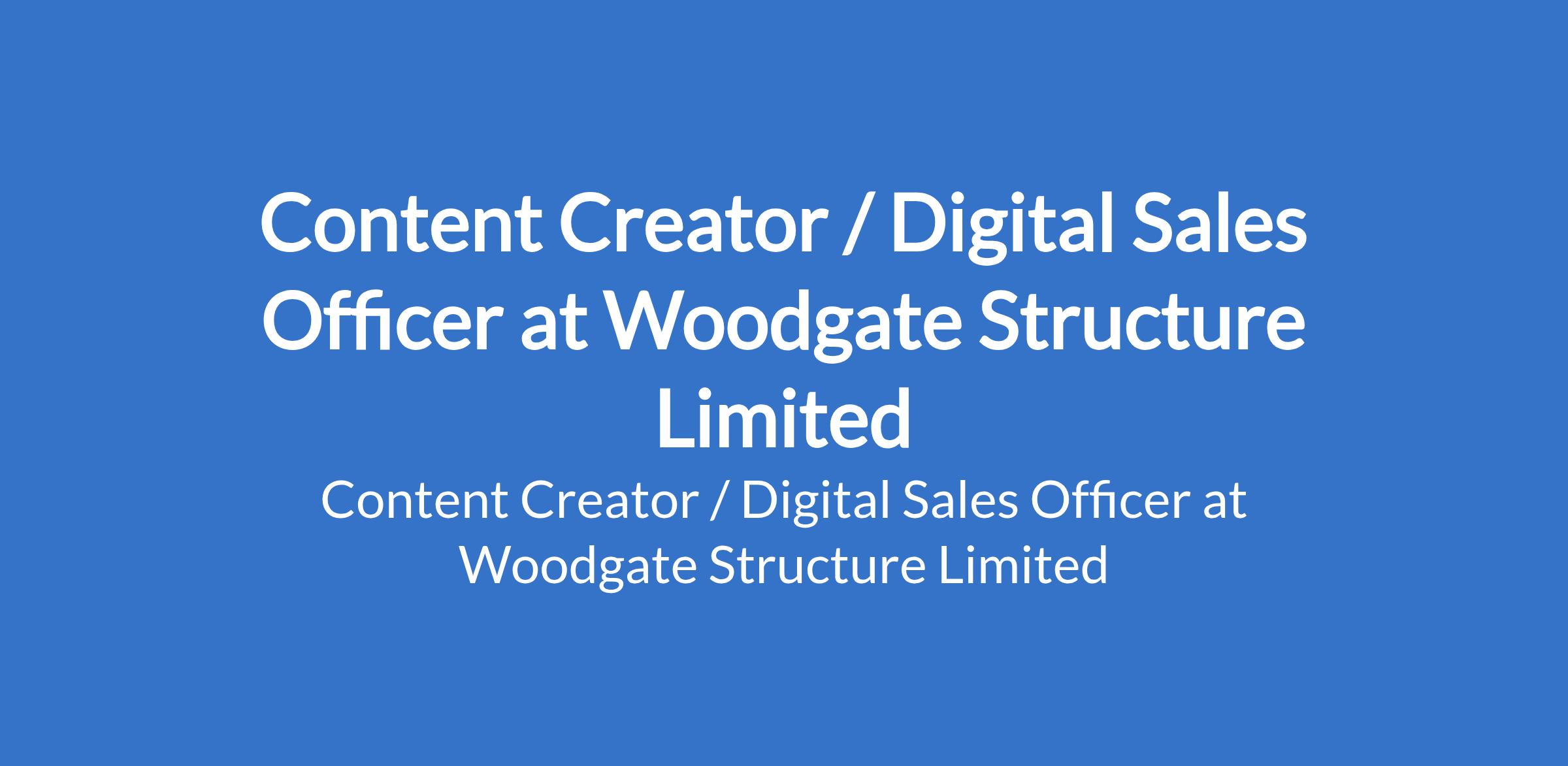 Woodgate Structure Limited is recruiting to fill the position of: Content Creator / Digital Sales Officer. The position is located in Maitama / Garki - Abuja (FCT). Salary: N150,000 - N200,000 monthly. Interested candidates should possess an OND, HND, or Bachelor's Degree with 3-4 years experience.