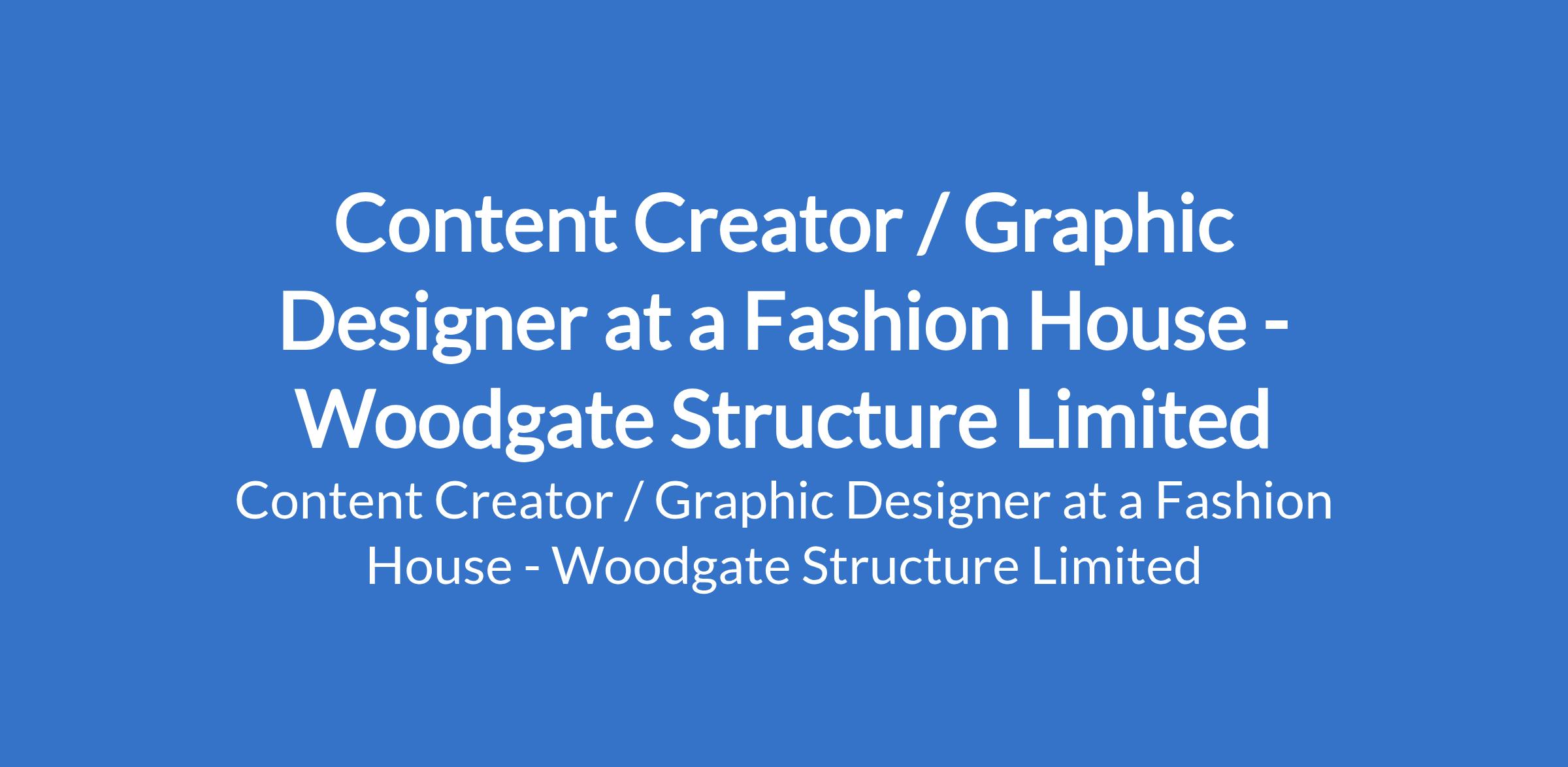Woodgate Structure Limited - Our client, a Fashion House is recruiting to fill the position of: Content Creator / Graphic Designer. The position is located in Wuse 2, Abuja (FCT). Salary: N80,000 - N120,000 monthly. Interested candidates should possess relevant qualifications.