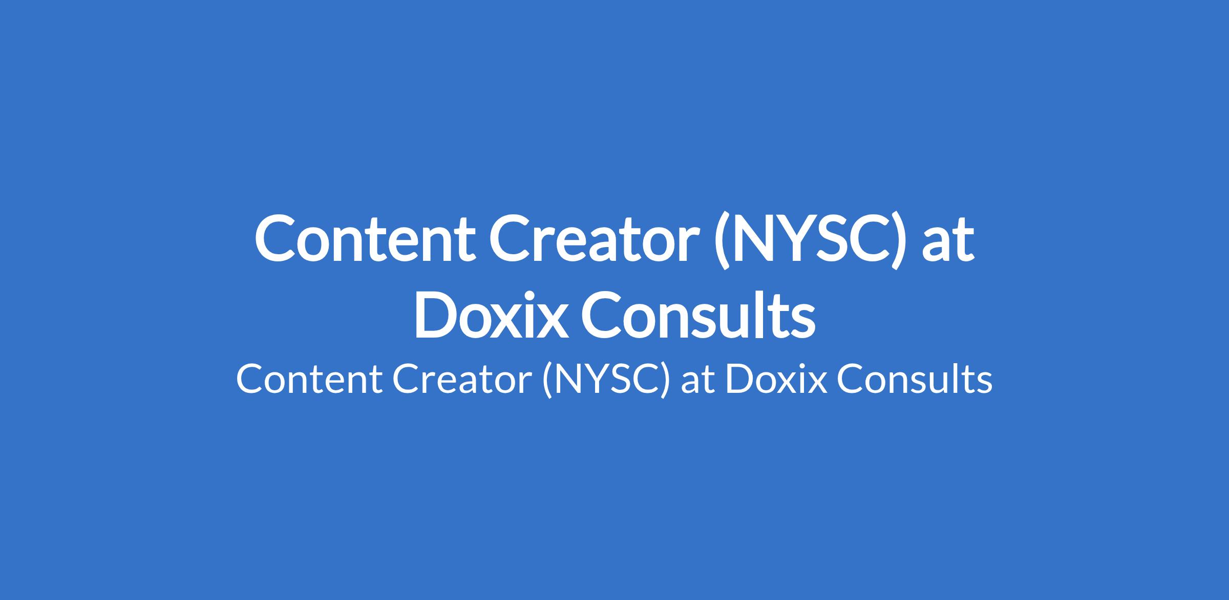 Doxix Consults is recruiting to fill the position of: Content Creator (NYSC). The position is located in Jabi, Abuja (FCT). Interested candidates should possess a minimum of SSCE / OND / HND / Bachelors Degree in Mass Communication, Marketing, Media, or related fields (added advantage) with proven experience as a Content Creator or similar role.