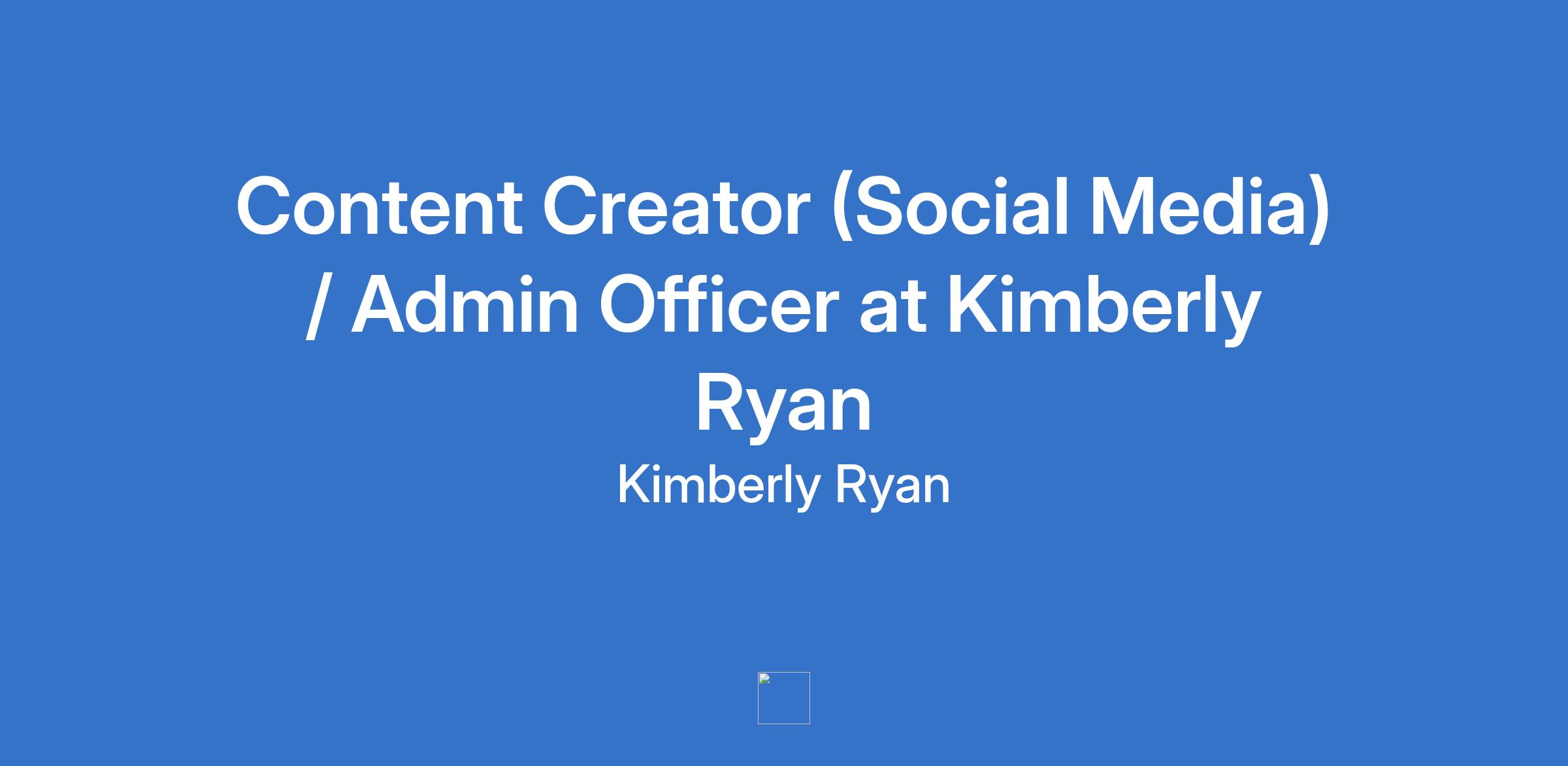 Content Creator (Social Media) / Admin Officer at Kimberly Ryan