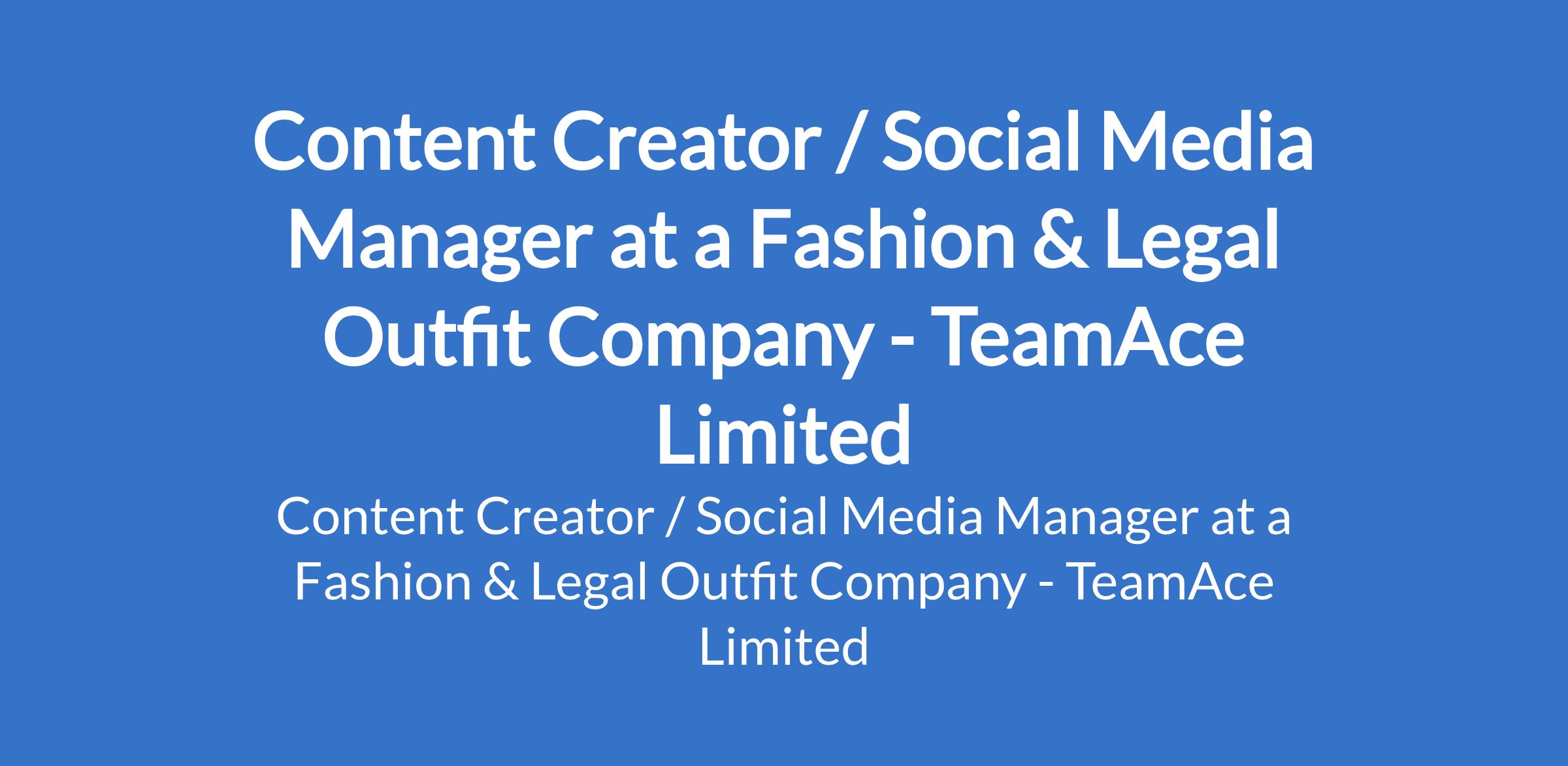 TeamAce Limited - Our client, a reputable organization in the Fashion & Legal Outfit sector is recruiting to fill the position of: Content Creator / Social Media Manager. The position is located in Lagos Island, Lagos State. Salary: N160,000 - N200,000 monthly. Interested candidates should possess a Bachelors Degree in Marketing, Communications, Media, or related fields with 2 - 4 years experience in content creation or social media management.