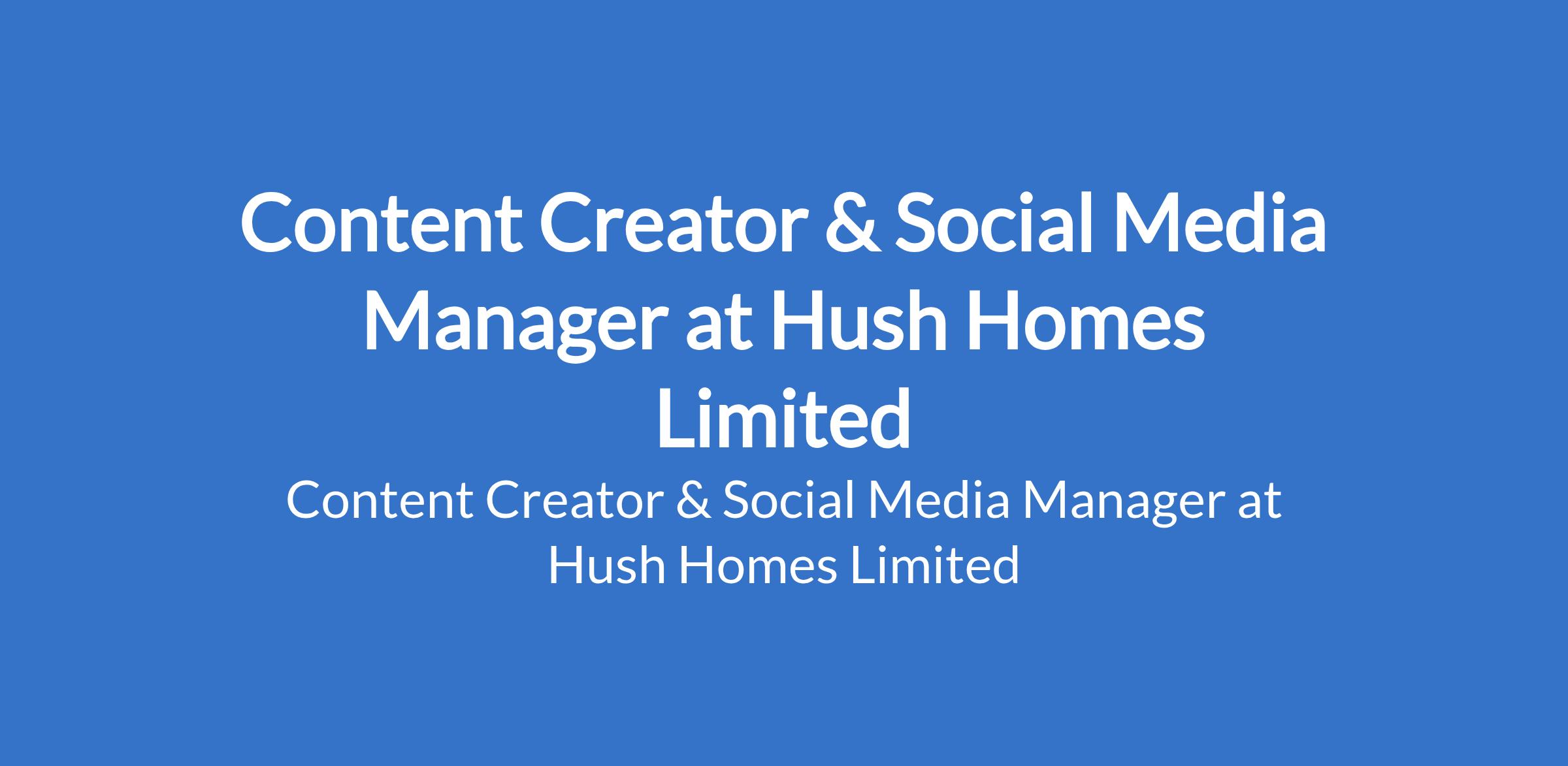 Hush Homes Limited is recruiting to fill the position of: Content Creator & Social Media Manager. The position is located in Abuja (FCT). Salary: N100,000 - N150,000 per month. Interested candidates should possess a relevant qualification.