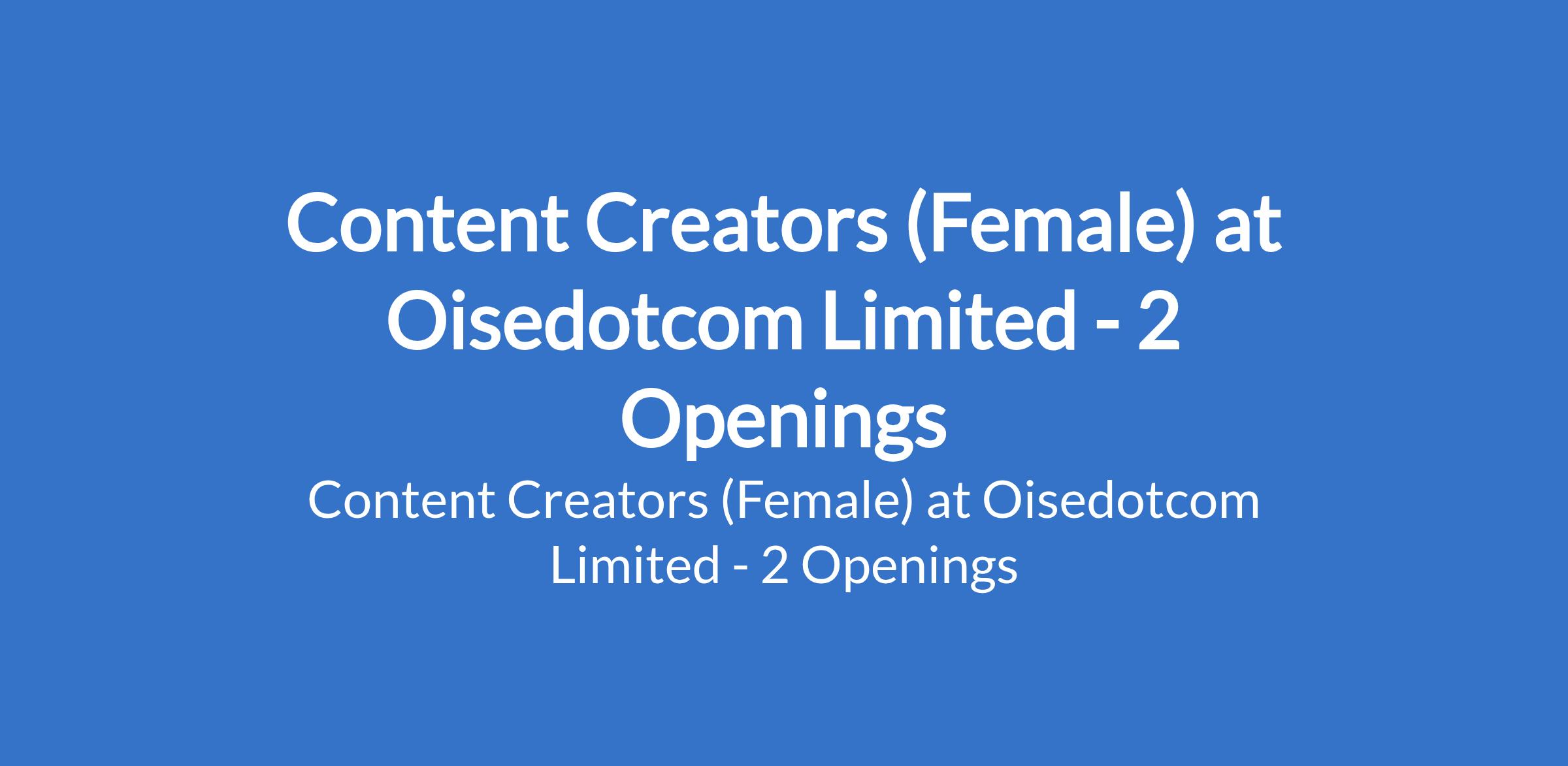 Oisedotcom Limited is recruiting to fill the position of: Content Creator. The position is located in Gbagada, Lagos State. Salary: N150,000 - N200,000 monthly. Interested candidates should possess relevant qualifications with proven work experience as a Content Creator, Copywriter or similar role and must be done with NYSC.