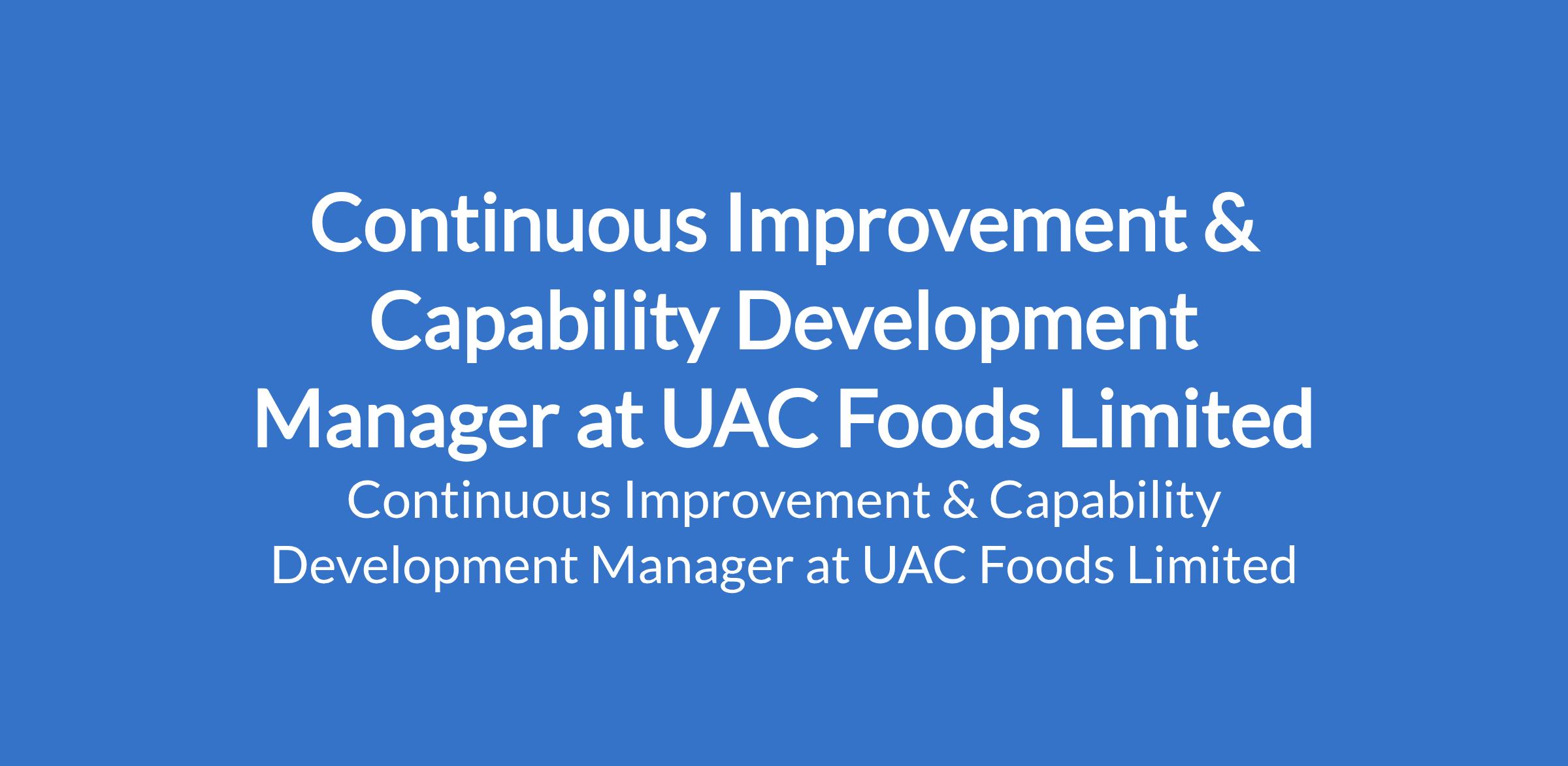 UAC Foods Limited is recruiting to fill the position of: Continuous Improvement & Capability Development Manager. The position is located in Lagos State. Interested candidates should possess a B.Sc or HND in Engineering, Food Science, or related Sciences with a minimum of 7 years managerial experience in beverage manufacturing sector or other FMCGs.