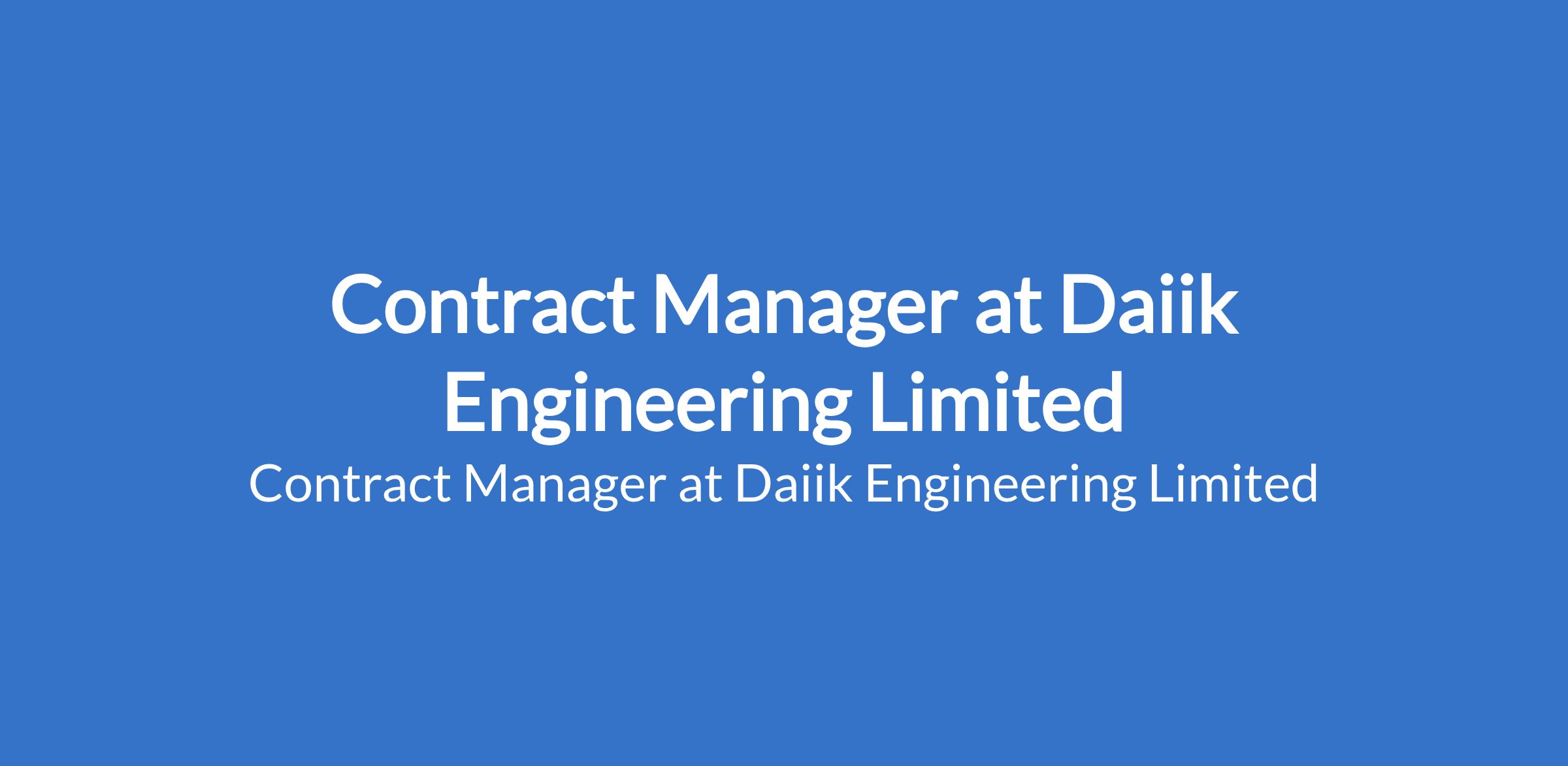 Daiik Engineering Limited is recruiting to fill the position of: Contract Manager. The position is located in Bonny, Rivers State. Interested candidates should possess a relevant qualification with 3-5+ years in a contract management, quantity surveying, or project management role within construction or facilities management.