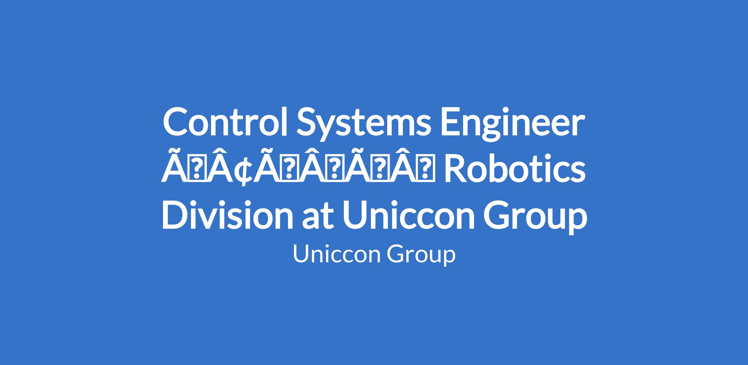 Control Systems Engineer âÃÂàRobotics Division at Uniccon Group