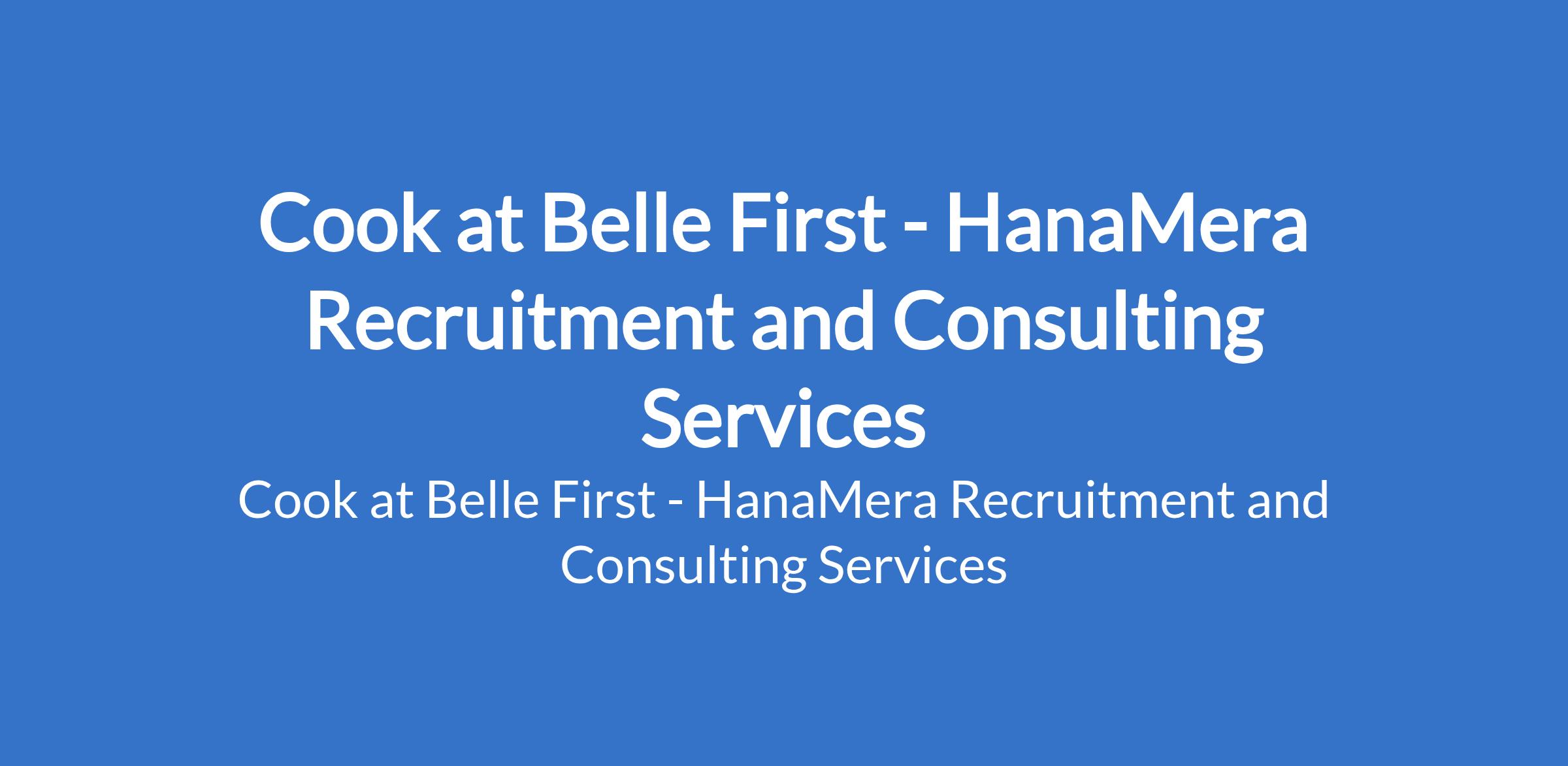 HanaMera Recruitment and Consulting Services - Our client, Belle First is recruiting to fill the position of: cook. The position is located in Asaba, Delta State. Salary: N100,000/month. Interested candidates should possess a relevant qualifications and proven experience cooking Nigerian local dishes.