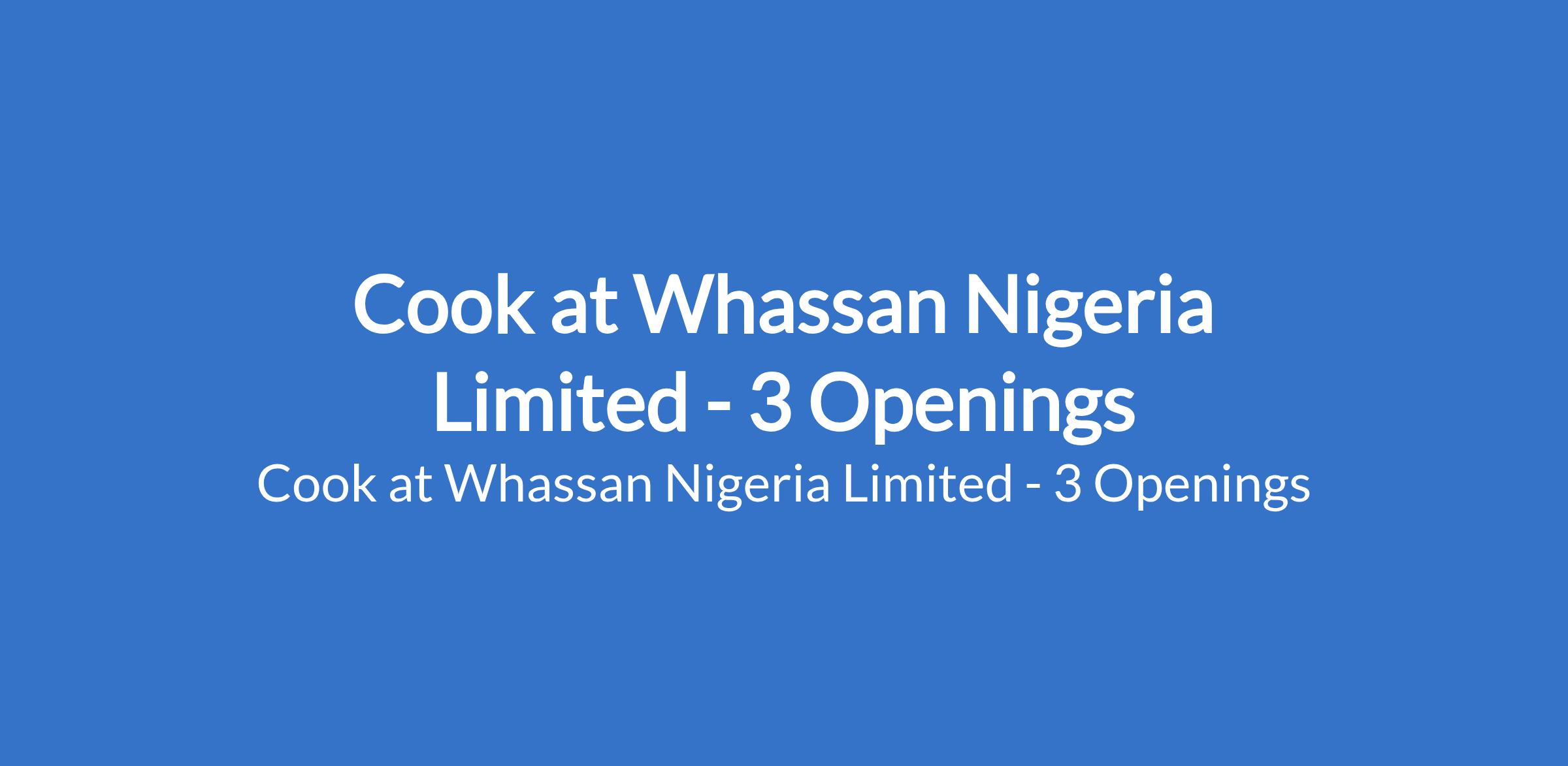 Cook at Whassan Nigeria Limited - 3 Openings