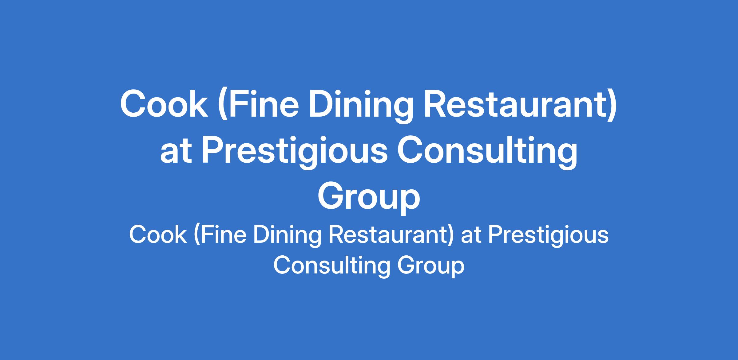 Prestigious Consulting Group is recruiting to fill the position of: Cook (Fine Dining Restaurant). The position is located in Lekki Phase 1, Lagos State. Salary: N100,000 - N150,000 monthly. Interested candidates should possess a Bachelor's Degree with a minimum of 3 years experience as a Cook in a fine dining or upscale restaurant.