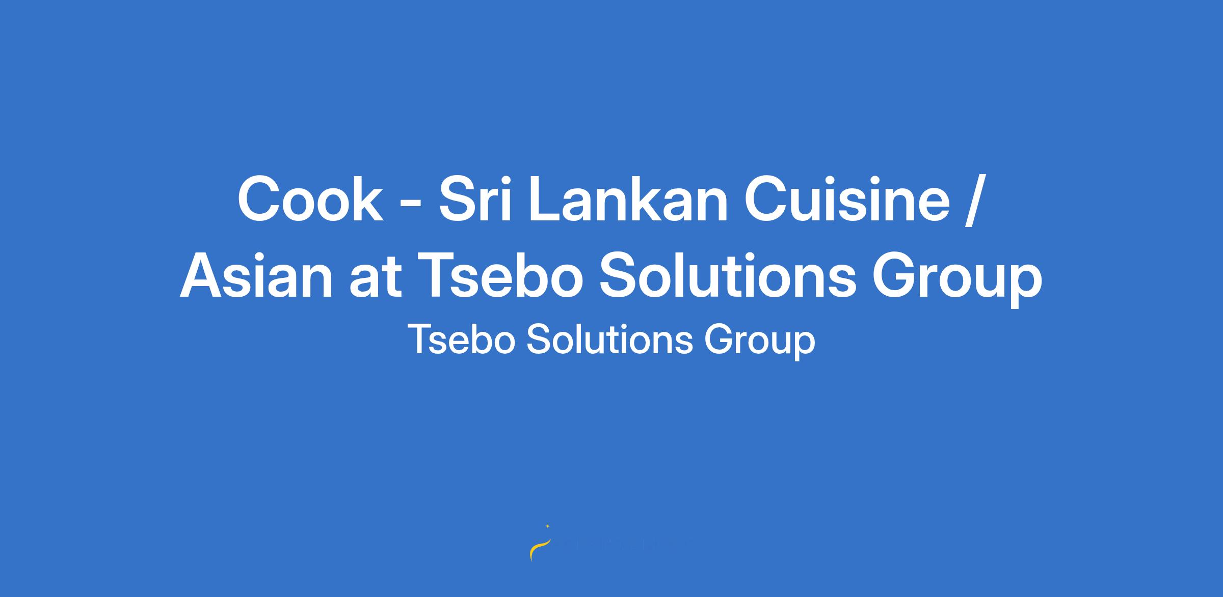 Cook - Sri Lankan Cuisine / Asian at Tsebo Solutions Group