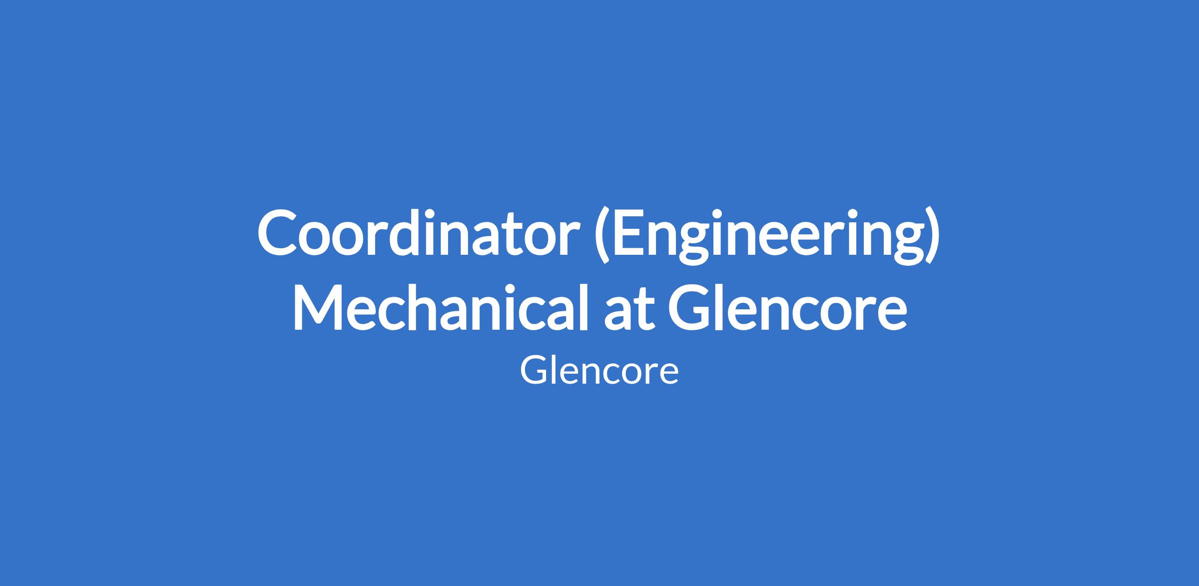 Coordinator (Engineering) Mechanical at Glencore