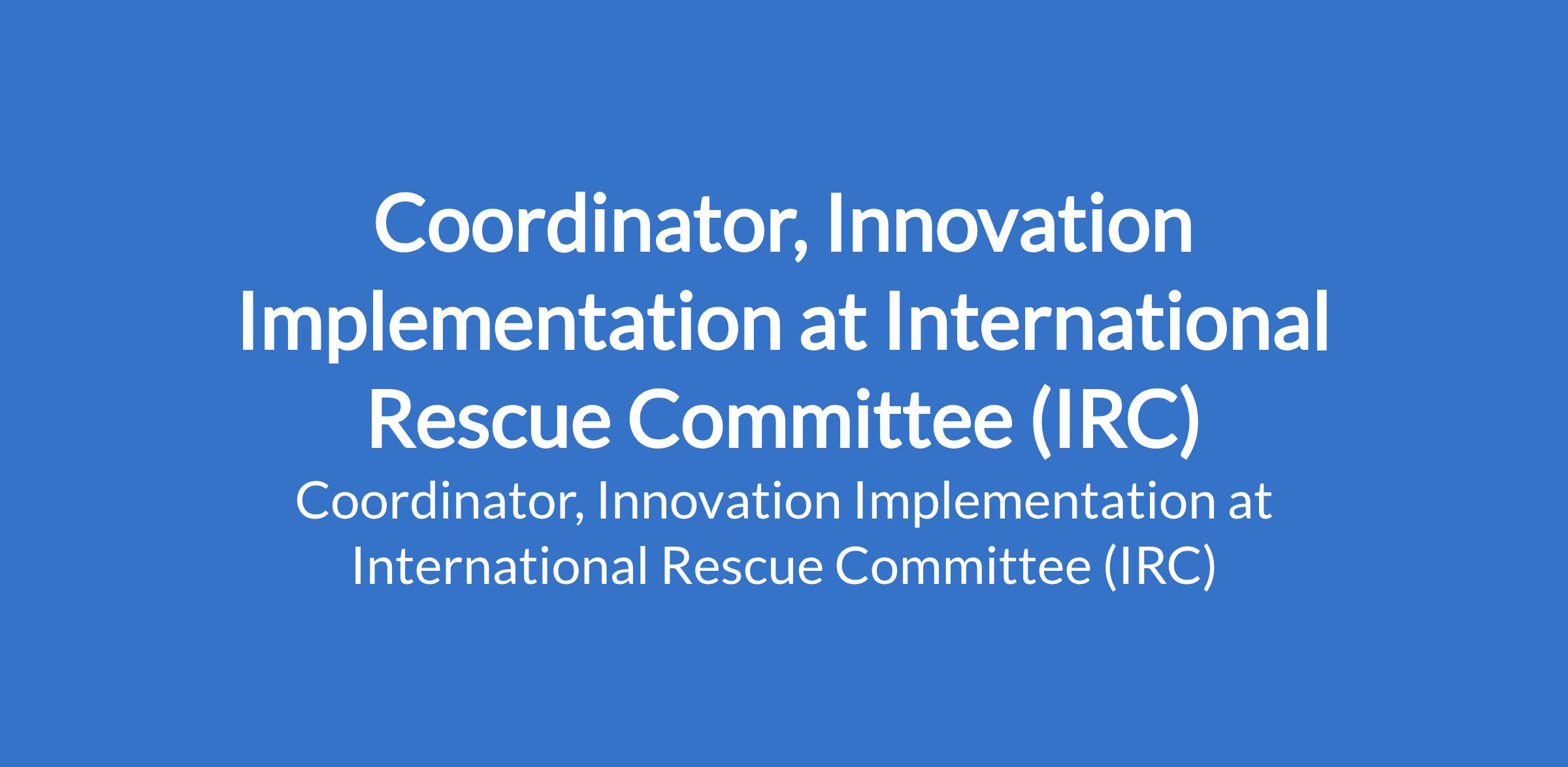 The International Rescue Committee (IRC) is recruiting to fill the position of: Coordinator, Innovation Implementation. The position is located in Abuja. Interested candidates should possess relevant qualifications with strong experience (3-6 years) in country-level program management within humanitarian or development organizations, including experience in senior roles such as Deputy Director of Programs, Senior Program Manager, or equivalent.