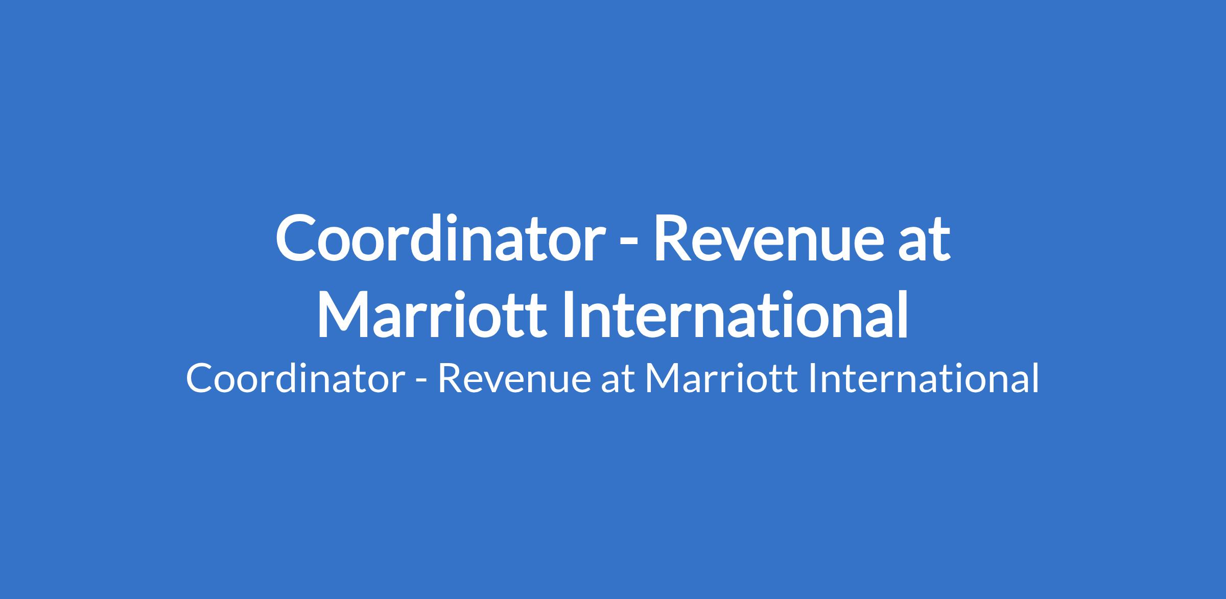 Marriott International is recruiting to fill the position of: Coordinator - Revenue. The position is located in Lagos State. Interested candidates should possess a High School diploma or G.E.D. equivalent with at least 1 year related work experience.