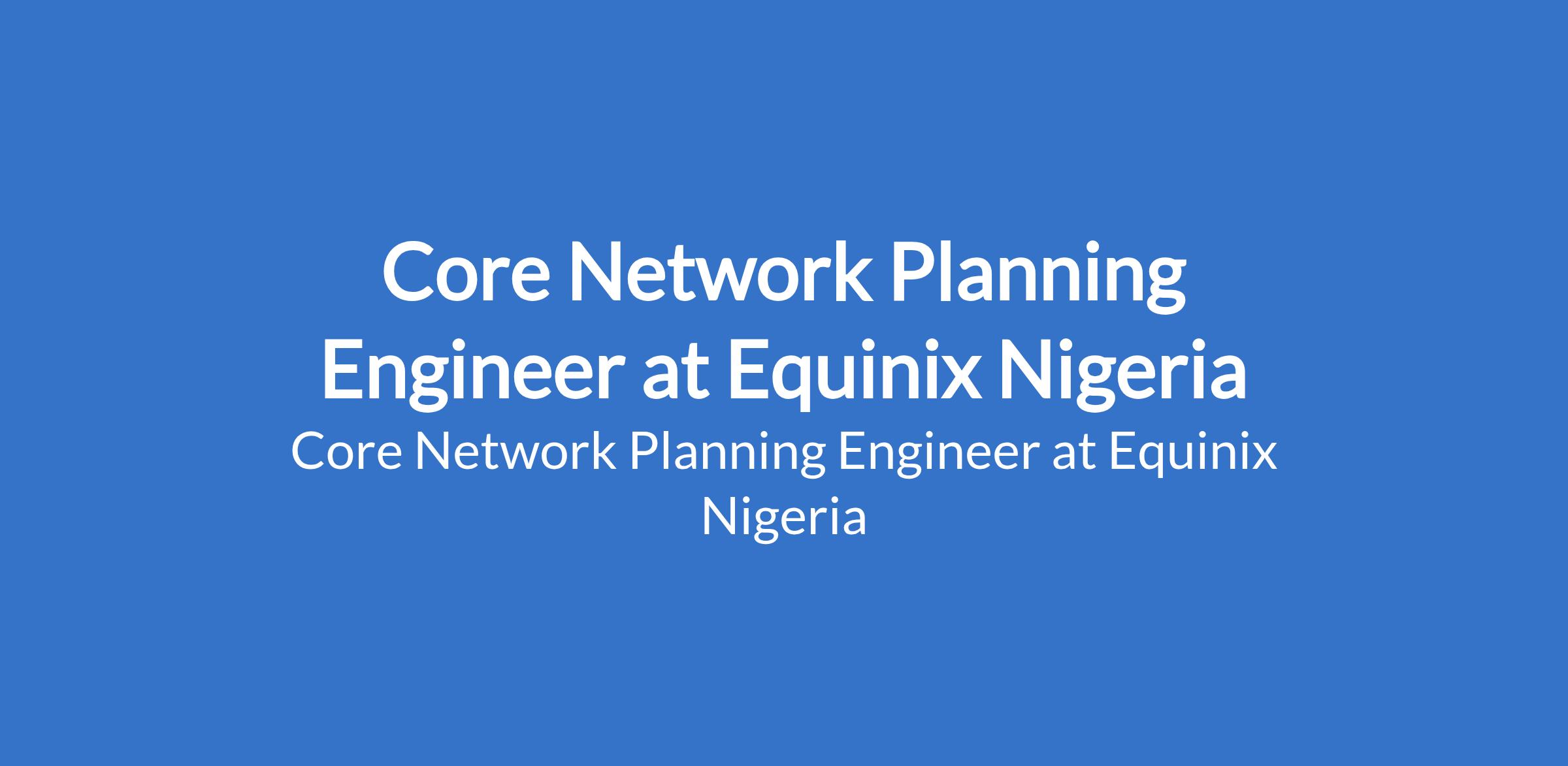 Equinix Nigeria is recruiting to fill the position of: Core Network Planning Engineer. The position is located in Lekki, Lagos State. Interested candidates should preferably possess a Bachelor's Degree in Electrical Engineering, Electronics, Computer Engineering or related fields with 1 - 3 years related experience.