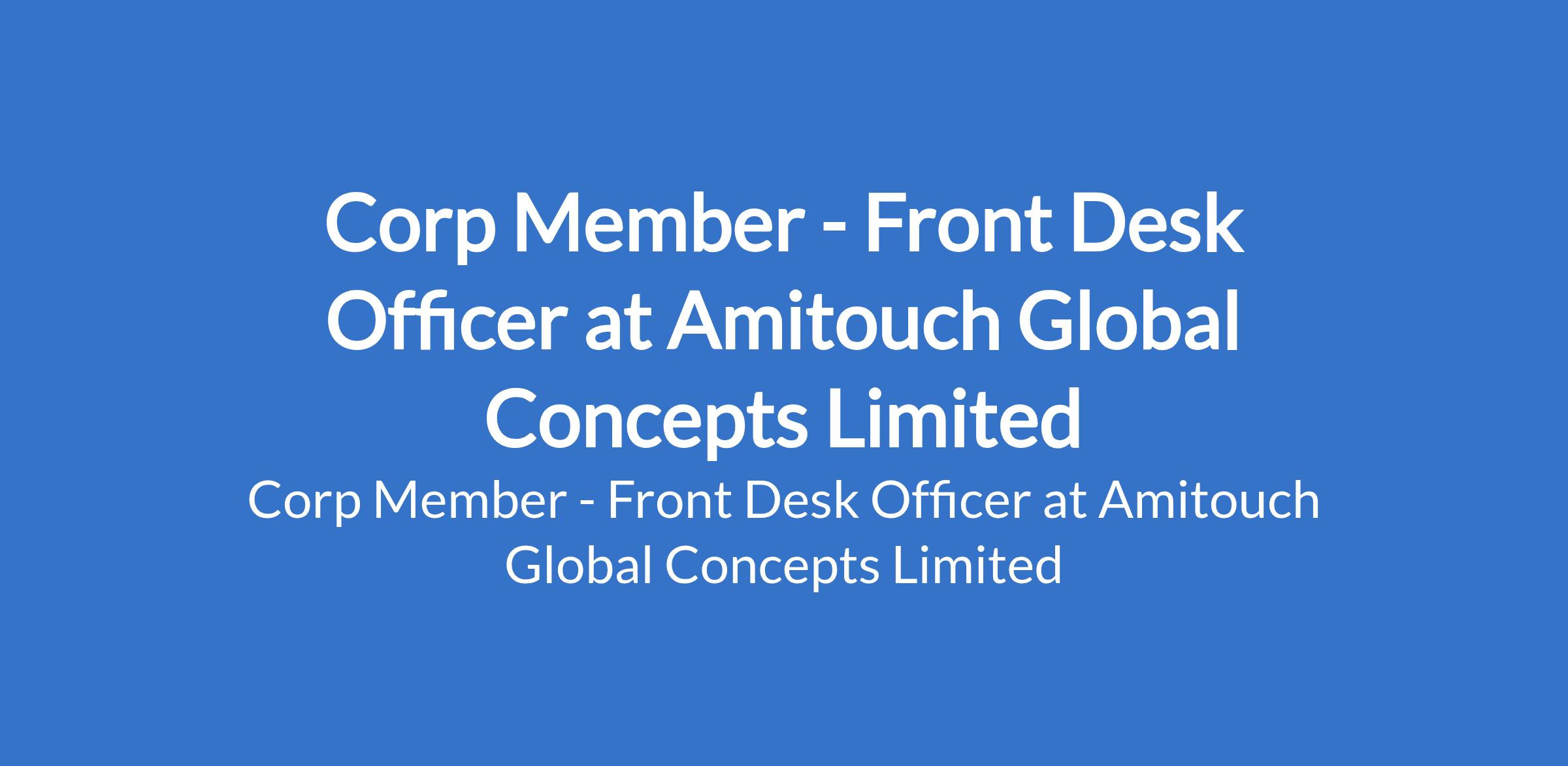 Amitouch Global Concepts Limited is recruiting to fill the position of: Corp Member - Front Desk Officer. The position is located in Abuja (FCT). Interested candidates should possess a Bachelors Degree or HND in any related field and must be a current Corps Member (NYSC).