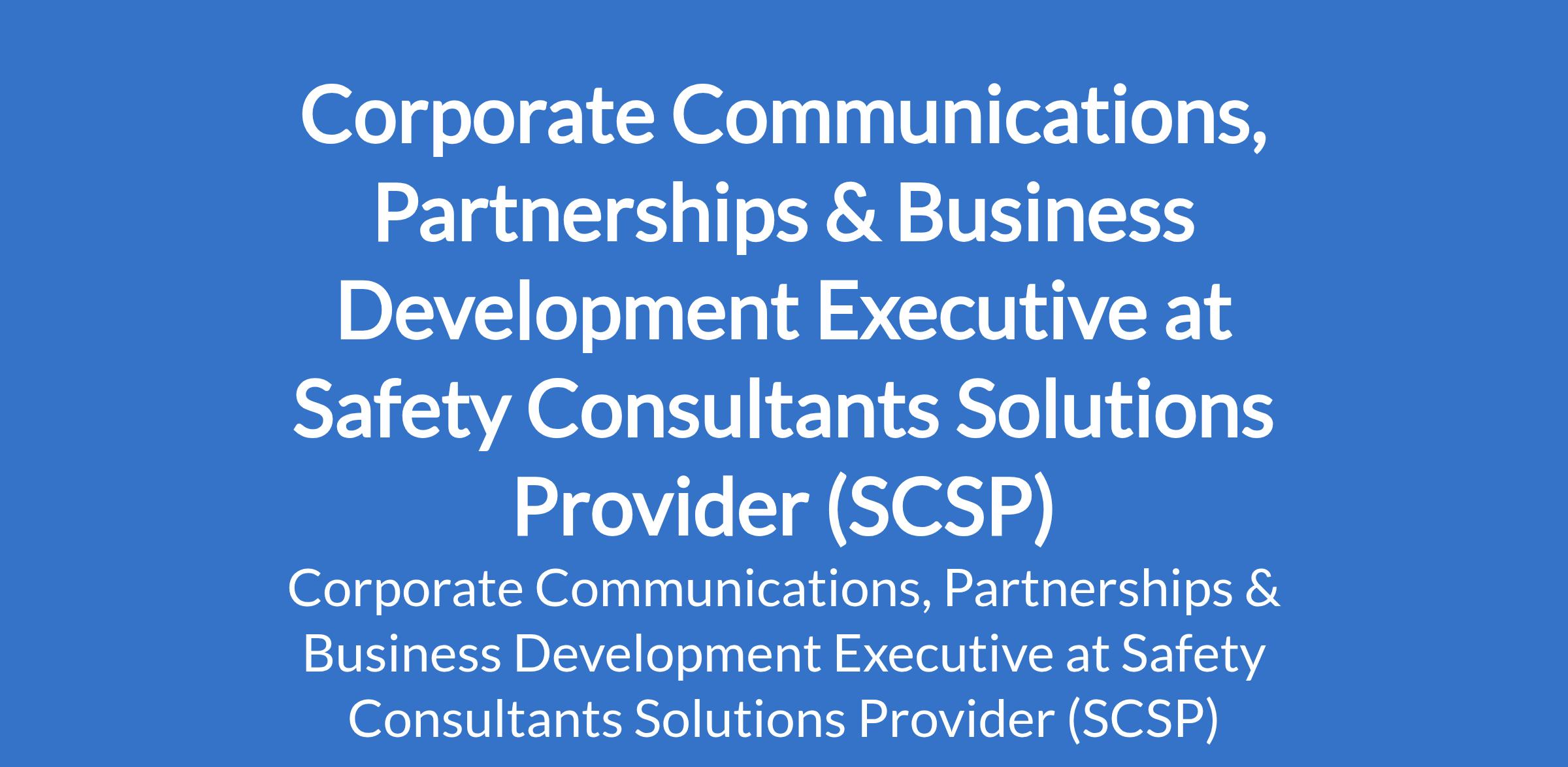 Safety Consultants Solutions Provider (SCSP) is recruiting to fill the position of: Corporate Communications, Partnerships & Business Development Executive. The position is located in Ajah, Lagos State. Salary: N250,000 - N300,000 monthly. Interested candidates should possess a Bachelors Degree in Public Relations, Mass Communication, Marketing, Business Administration, or a related discipline with 25 years experience in Public Relations, Corporate Communication, Event Management, or related roles.