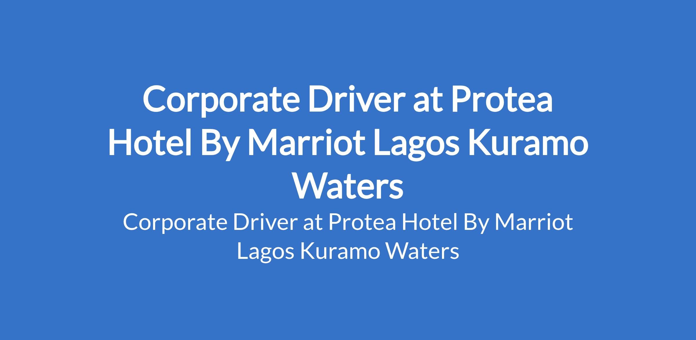 Protea Hotel By Marriot Lagos Kuramo Waters is recruiting to fill the position of: Corporate Driver. The position is located in Lagos State. Salary: N120,000 - N130,000 / month. Interested candidates should possess a valid drivers licence with adequate number of driving experience.