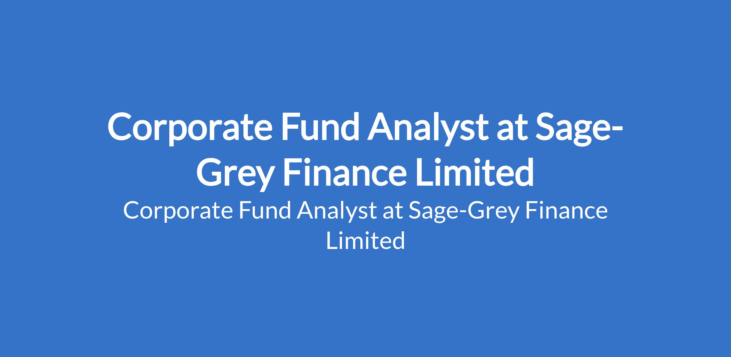 Sage-Grey Finance Limited is recruiting to fill the position of: Corporate Fund Analyst. The position is located in Lagos State. Interested candidates should possess a Bachelors Degree in Finance, Economics, Accounting, or a related field with 2 4 years of experience in financial advisory, investment banking, corporate finance, or fund-related roles.