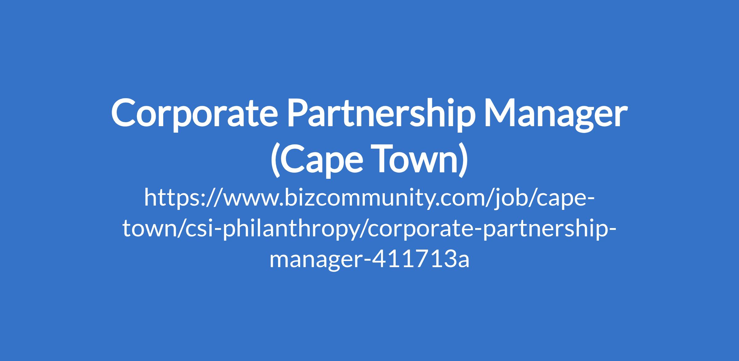 https://www.bizcommunity.com/job/cape-town/csi-philanthropy/corporate-partnership-manager-411713a