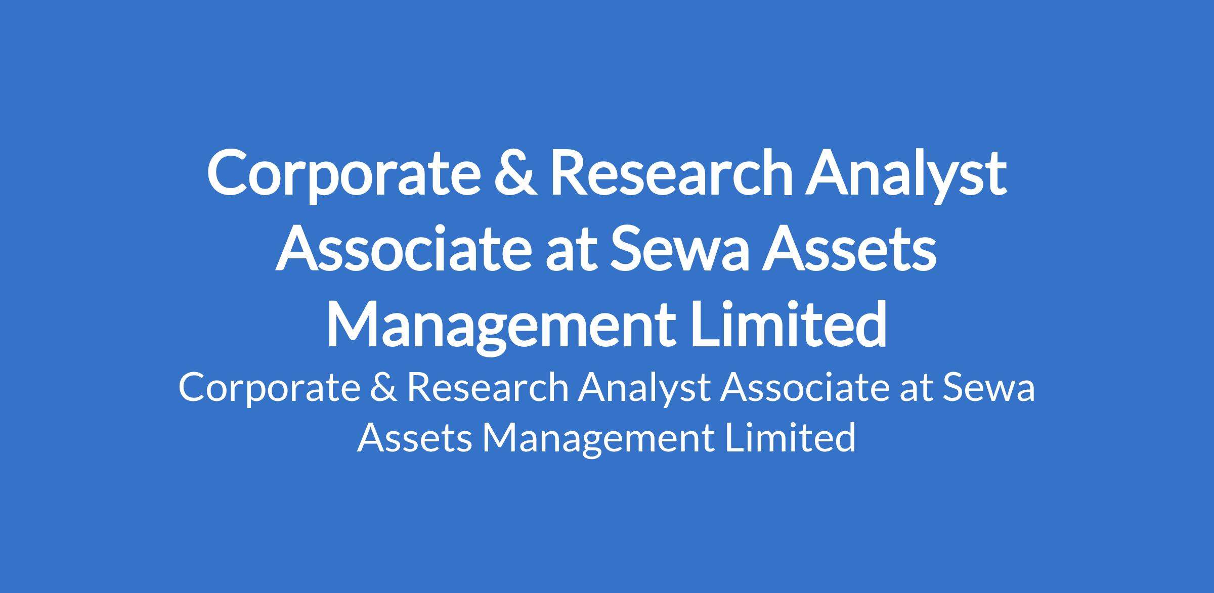 Sewa Assets Management Limited is recruiting to fill the position of: Corporate & Research Analyst Associate. The position is located in Victoria Island, Lagos State. Interested candidates should possess an MBA and investment banking experience; or an Undergraduate Degree in Business, Economics, or Finance with 3 years of investment banking experience.