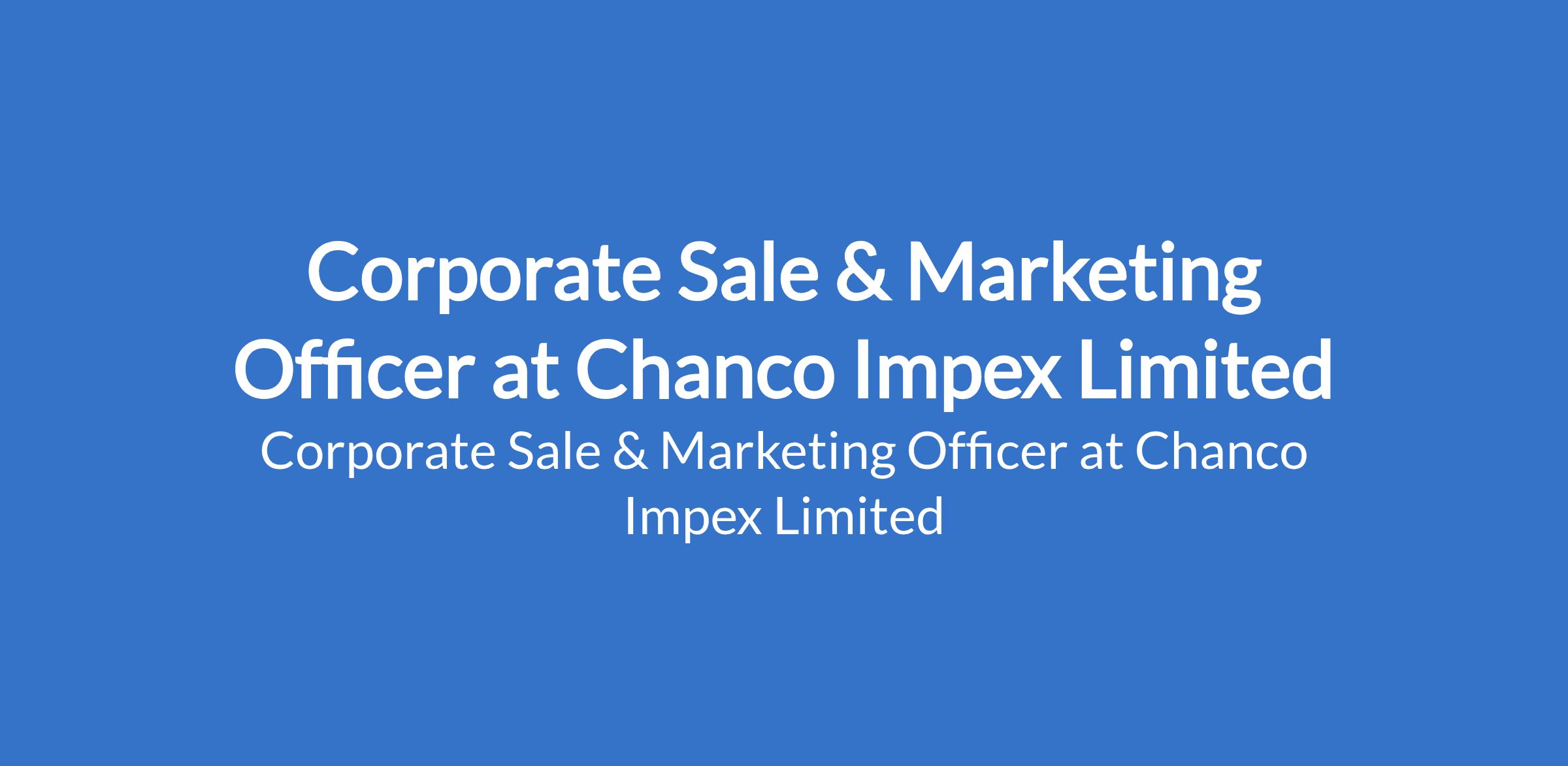 Chanco Impex Limited is recruiting to fill the position of: Corporate Sale & Marketing Officer. The position is located in Lagos State. Salary: N250,000 - N300,000 / month. Interested candidates should possess a Bachelor's Degree in Business, Marketing, or a related field is preferred but not mandatory with 5 - 7 years of successful sales experience in the raw materials industry, will be preferred.