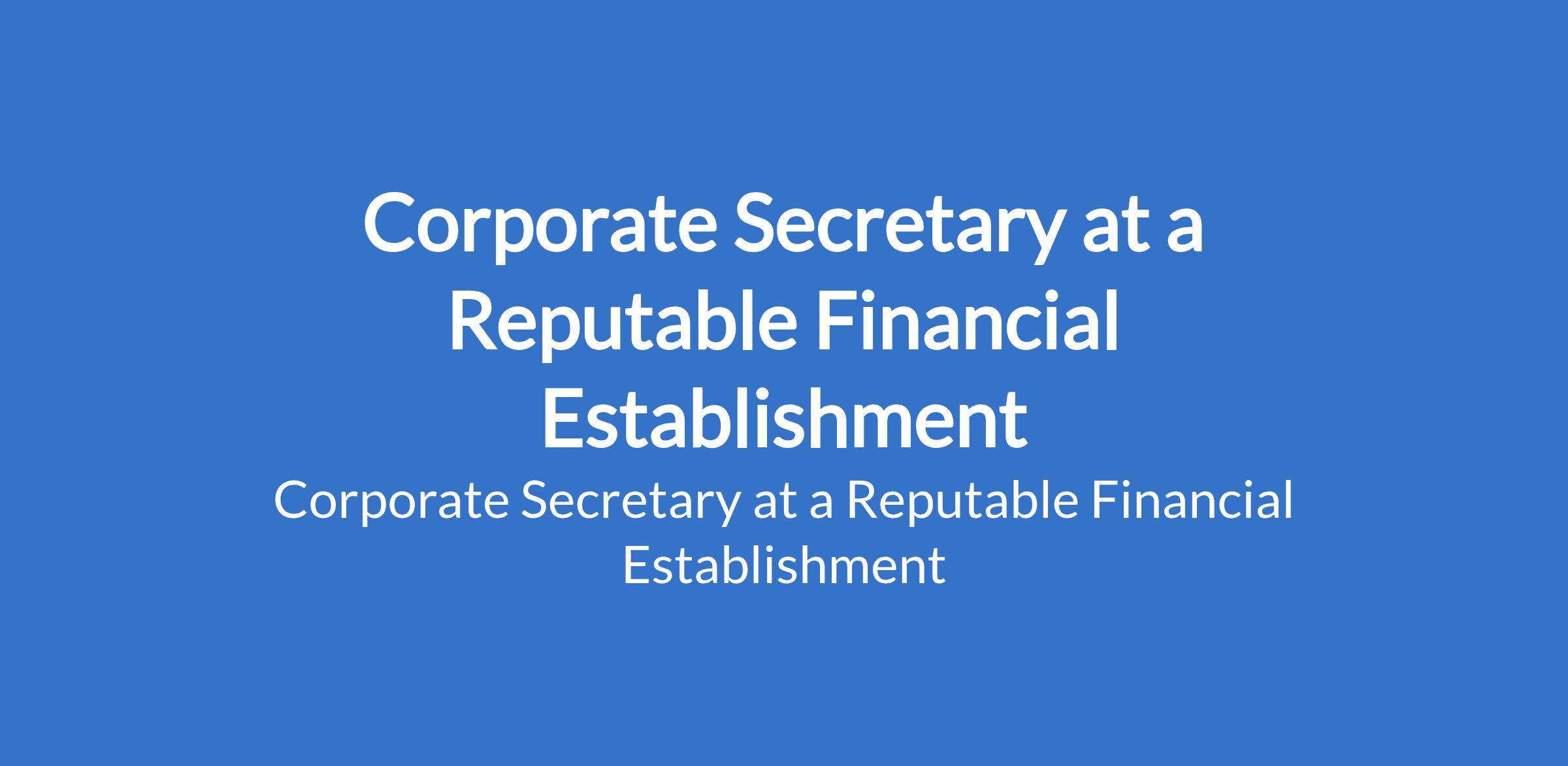 A reputable Financial establishment is recruiting to fill the position of: Corporate Secretary. The position is located in Lagos State. Interested candidates should possess an LLB in Law or ACIS Professional Certificate with 2 years experience in Corporate Administration in a Professional office, and must have experience in company applications and management with the Corporate Affairs Commission, Abuja.