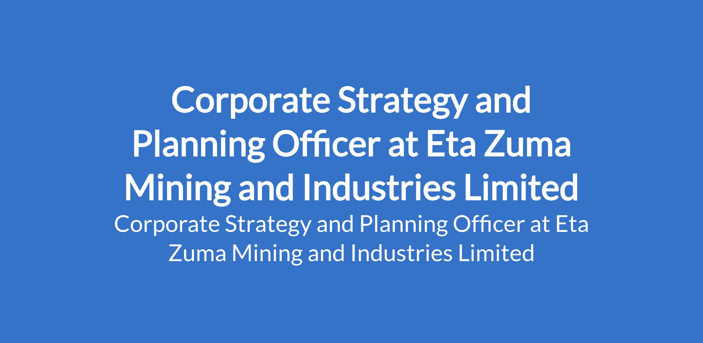 Eta Zuma Mining and Industries Limited is recruiting to fill the position of: Corporate Strategy and Planning Officer. The position is located in Abuja (FCT). Interested candidates should possess a Bachelors Degree in Business Administration, Economics, Finance, or other analytical discipline with a minimum of 5 years cognate experience in corporate strategy, planning, or related roles.