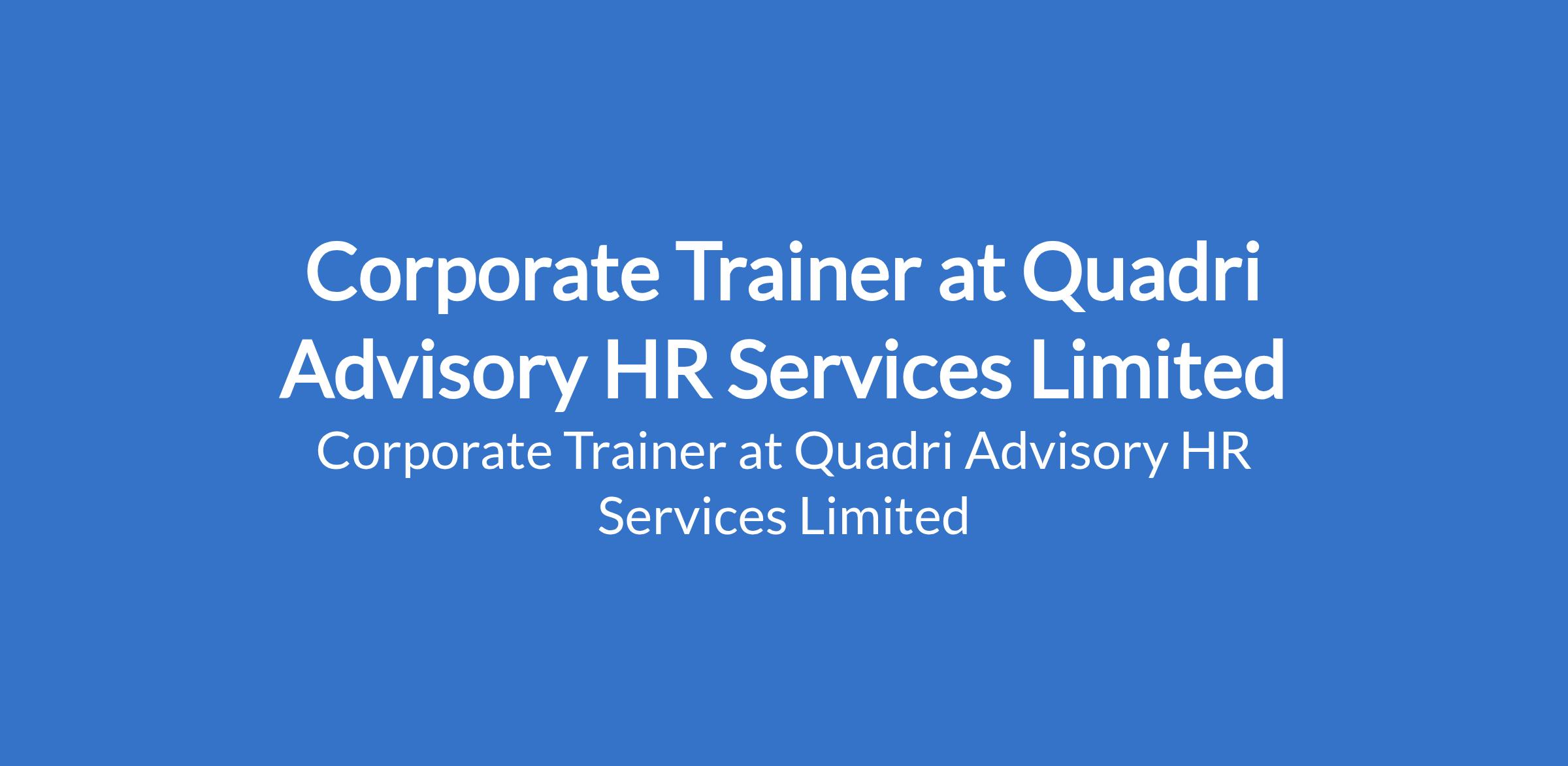 Quadri Advisory HR Services Limited is recruiting to fill the position of: Corporate Trainer. The position is located in Lagos State. Salary: N200,000 - N250,000 monthly. Interested candidates should possess a B.Sc /BA in Business Administration, HR, Finance or a relevant field; Certification (e.g., CPLP) is a plus with proven experience as a corporate trainer.