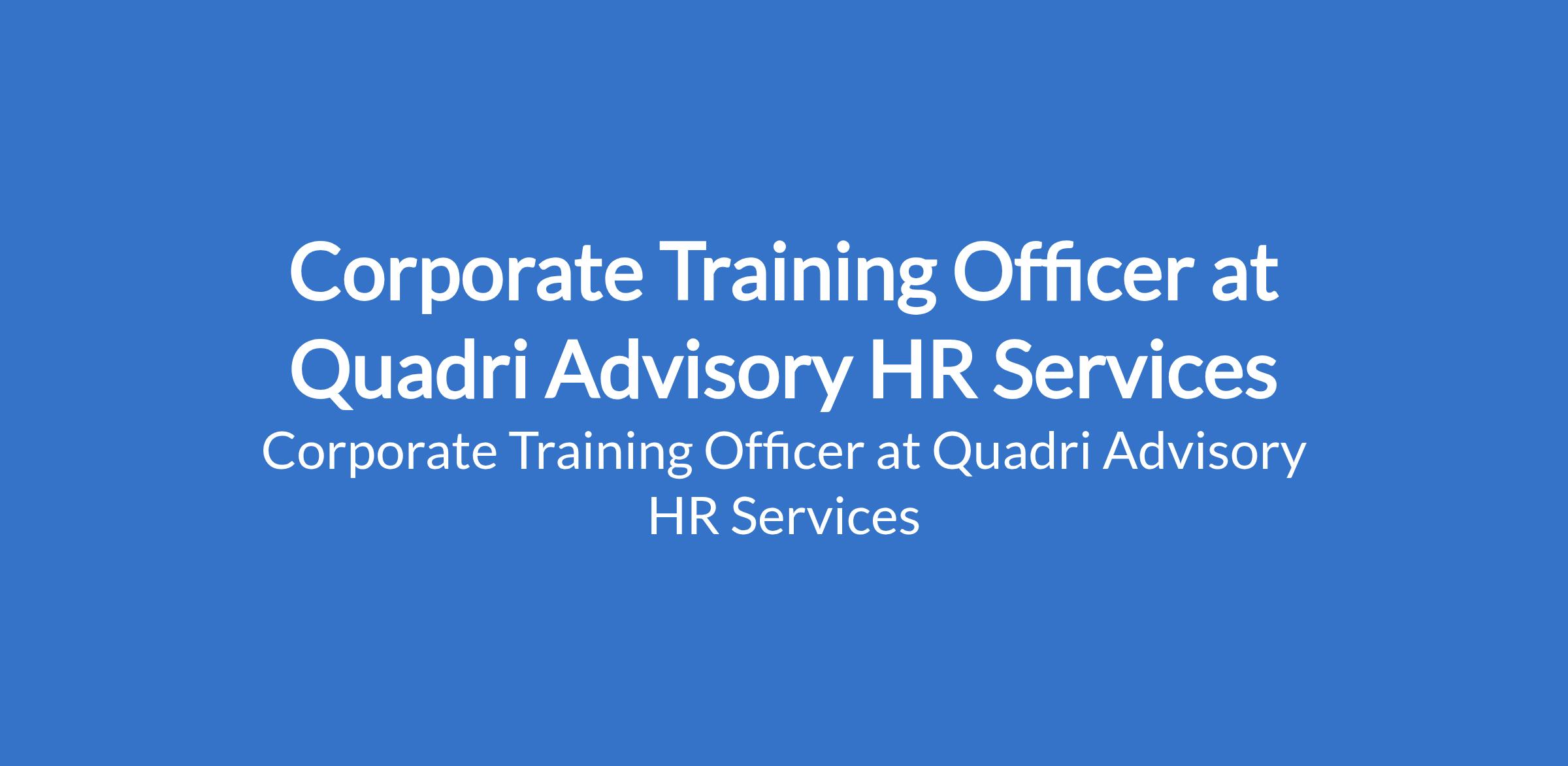 Quadri Advisory HR Services is recruiting to fill the position of: Corporate Training Officer. The position is located in Lagos State. Salary: N200,000 - N250,000 per month. Interested candidates should possess relevant qualifications with proven experience as corporate trainer.