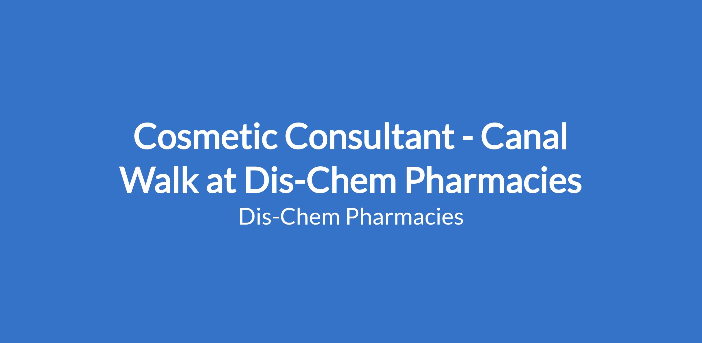 Dis-Chem Pharmacies' requires the committed services of a customer-oriented Cosmetic Consultant for their Canal Walk store. You will be tasked with the effective promoting and selling of Dis-Chem cosmetic and beauty products, through excellent and consistent customer service.