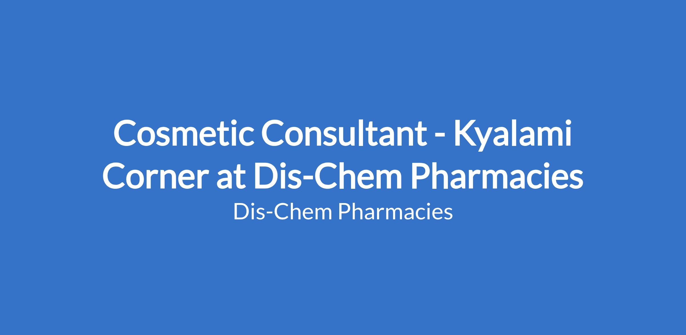 Dis-Chem Pharmacies' requires the committed services of a customer-oriented Cosmetics Consultant for their Store Kyalami Corner. You will be tasked with the effective promoting and selling of Dis-Chem cosmetic and beauty products, through excellent and consistent customer service.