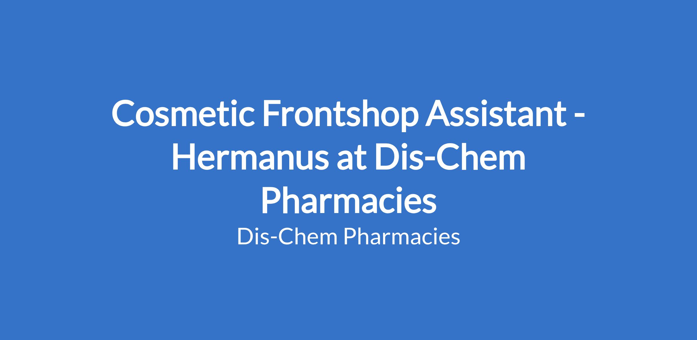 Dis-Chem Pharmacies requires a Cosmetic Frontshop Assistant for their Hermanus store, in the Western Cape Region. To uphold the merchandising standards whilst supporting the customer service at point of sales in accordance with Dis-Chem policies and procedures.