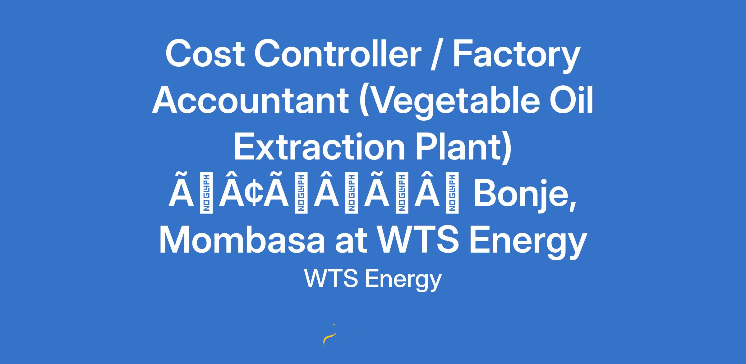 Cost Controller / Factory Accountant (Vegetable Oil Extraction Plant) âÃÂàBonje, Mombasa at WTS Energy
