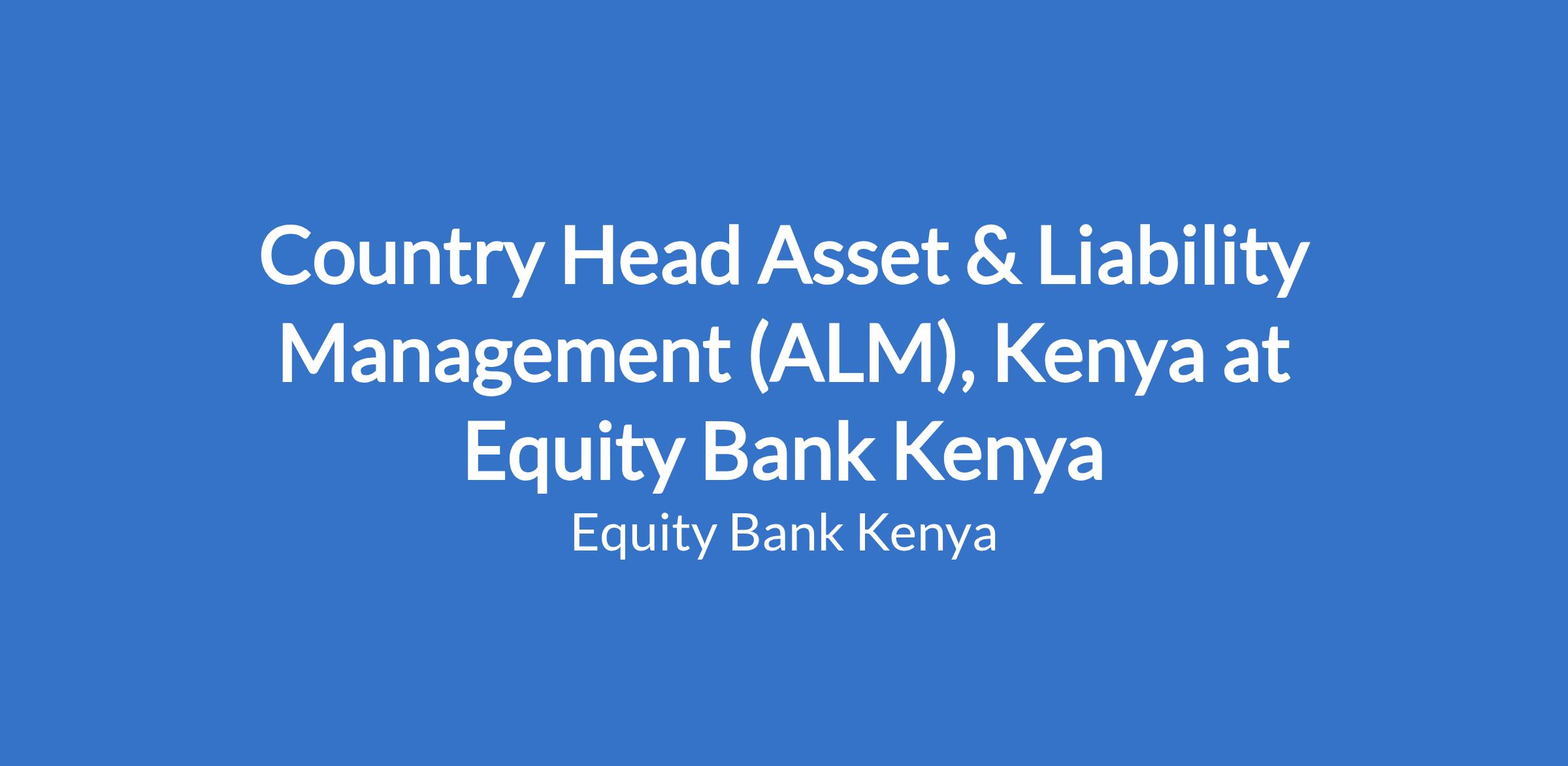 Country Head Asset & Liability Management (ALM), Kenya at Equity Bank Kenya
