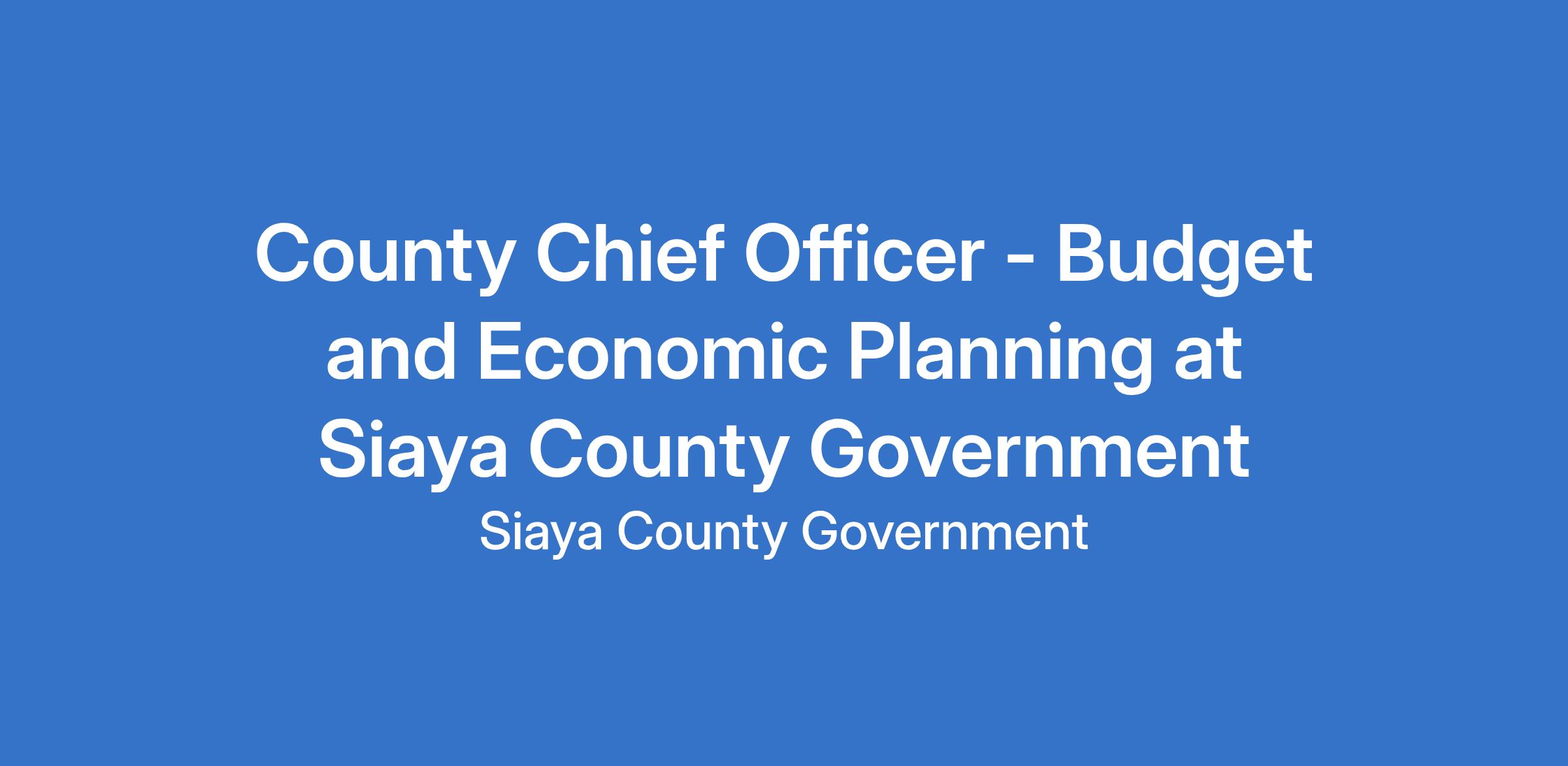 County Chief Officer - Budget and Economic Planning at Siaya County Government