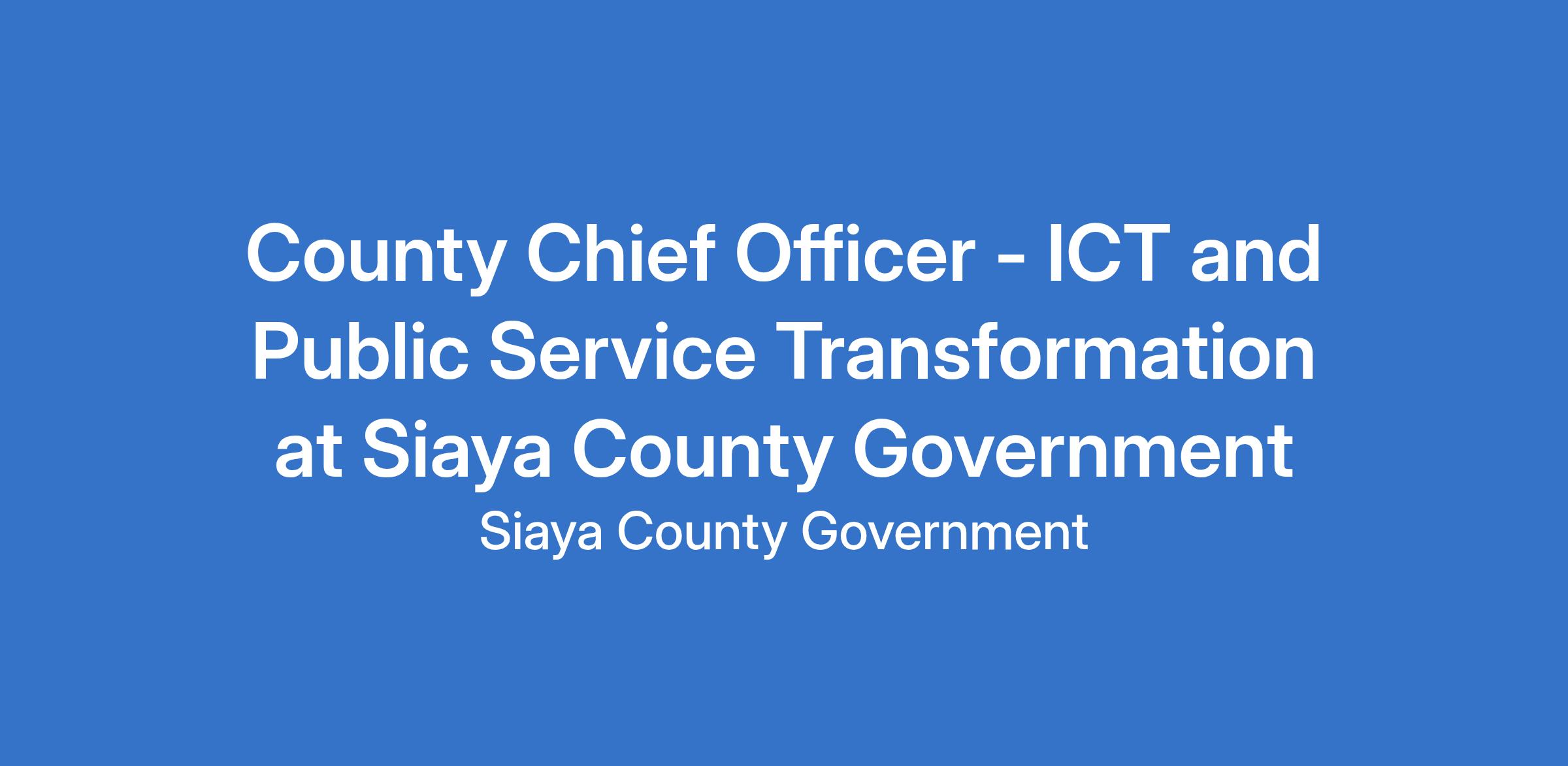 County Chief Officer - ICT and Public Service Transformation at Siaya County Government