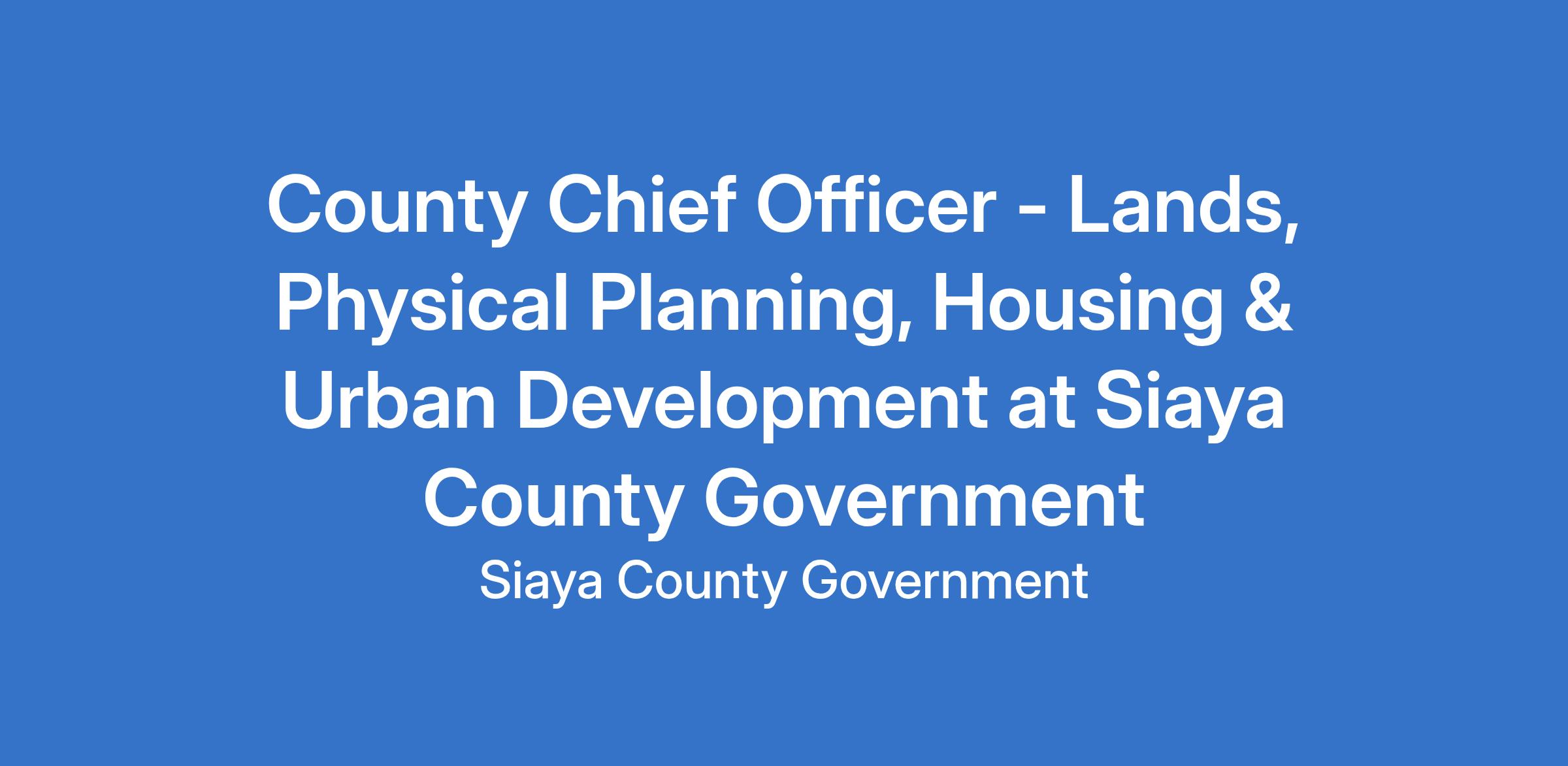 County Chief Officer - Lands, Physical Planning, Housing & Urban Development at Siaya County Government