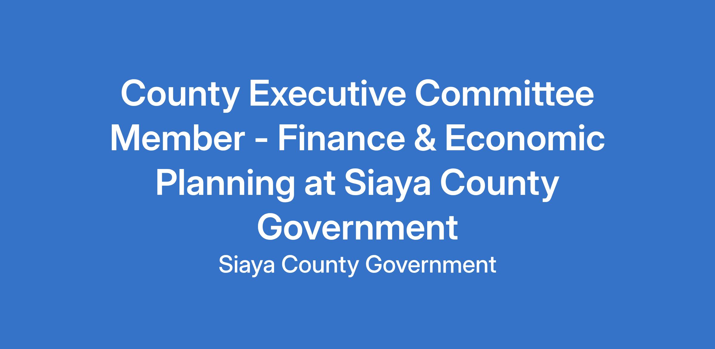County Executive Committee Member - Finance & Economic Planning at Siaya County Government