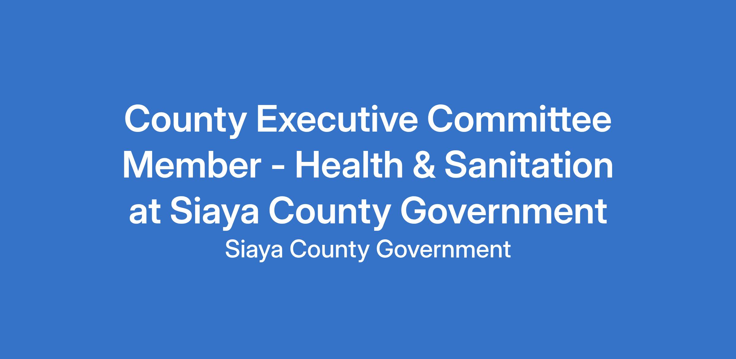 County Executive Committee Member - Health & Sanitation at Siaya County Government