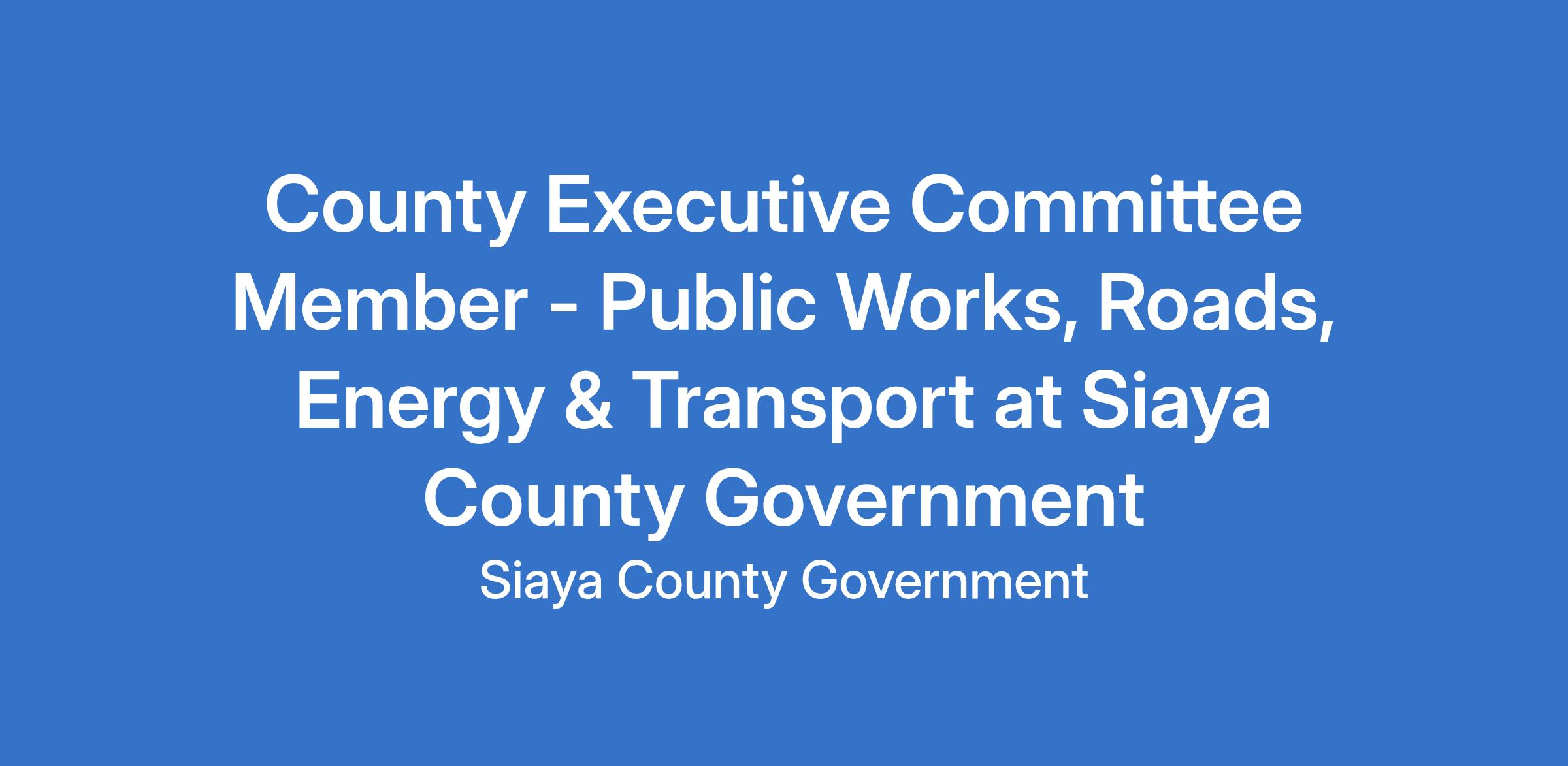 County Executive Committee Member - Public Works, Roads, Energy & Transport at Siaya County Government