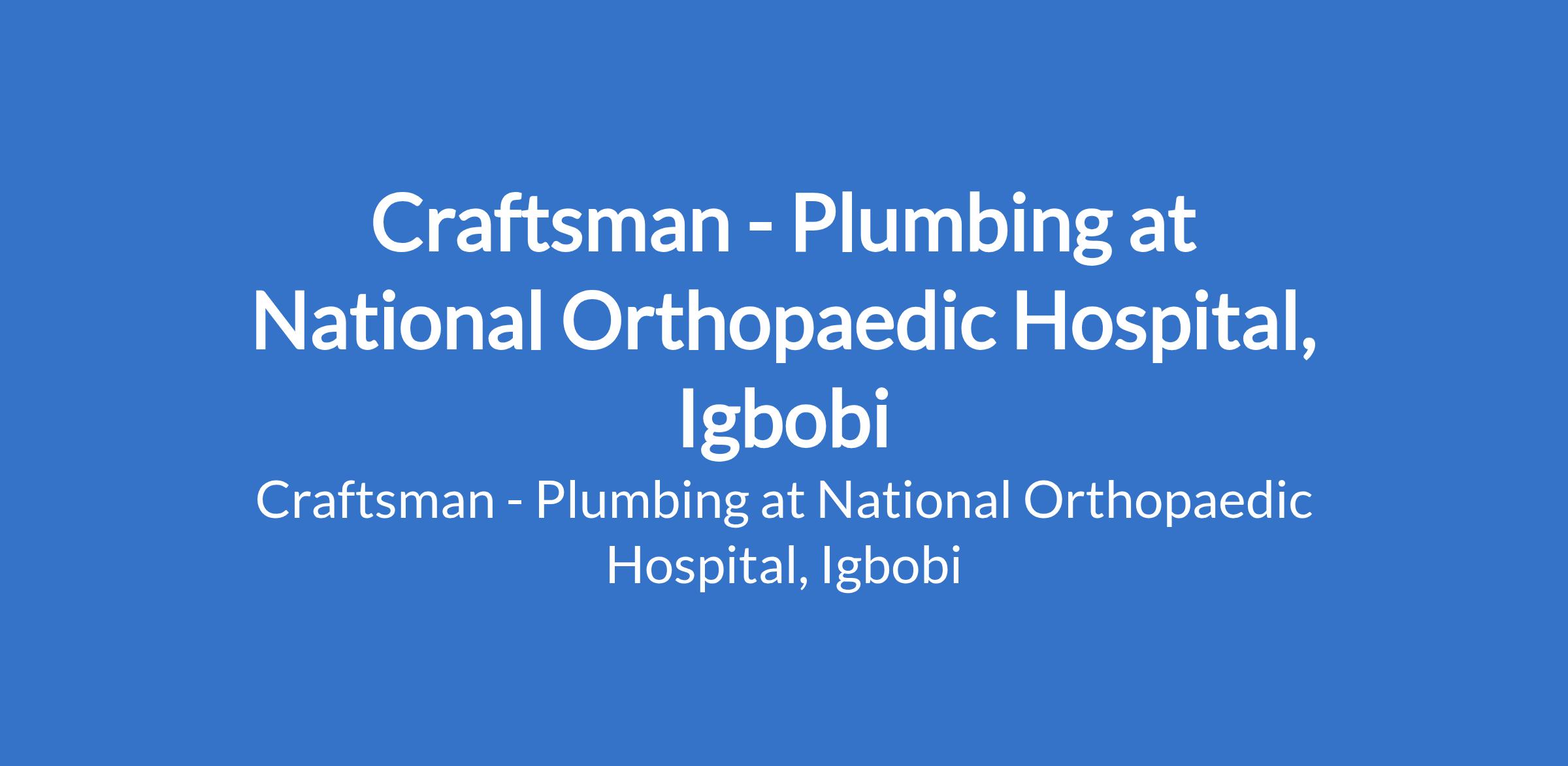 National Orthopaedic Hospital, Igbobi invites applications from suitably qualified candidates for the position of: Craftsman - Plumbing. The position is located in Yaba, Lagos State. Interested candidates should possess the Junior Secondary School Certificate (JSC) plus Government Trade Test Class III, II and I Certificates in the relevant field with a minimum of Two (2) years cognate experience.