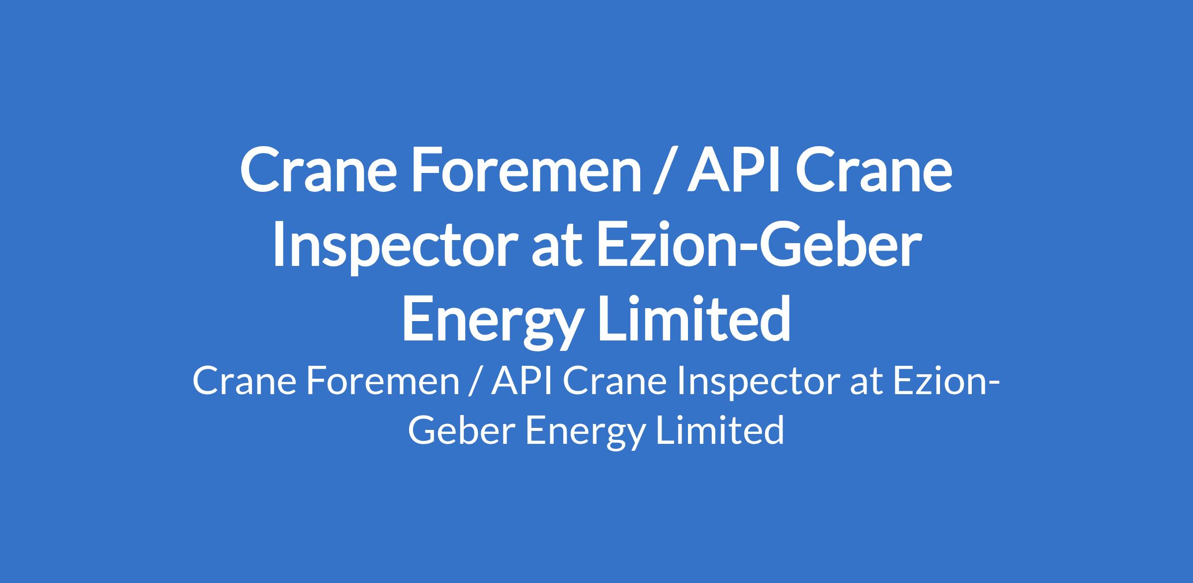 Ezion-Geber Energy Limited is recruiting to fill the position of: Crane Foremen / API Crane Inspector. Interested candidates should possess a relevant technical qualifications or certifications (Oil & Gas) with a minimum of 8 years of experience in offshore rigging.