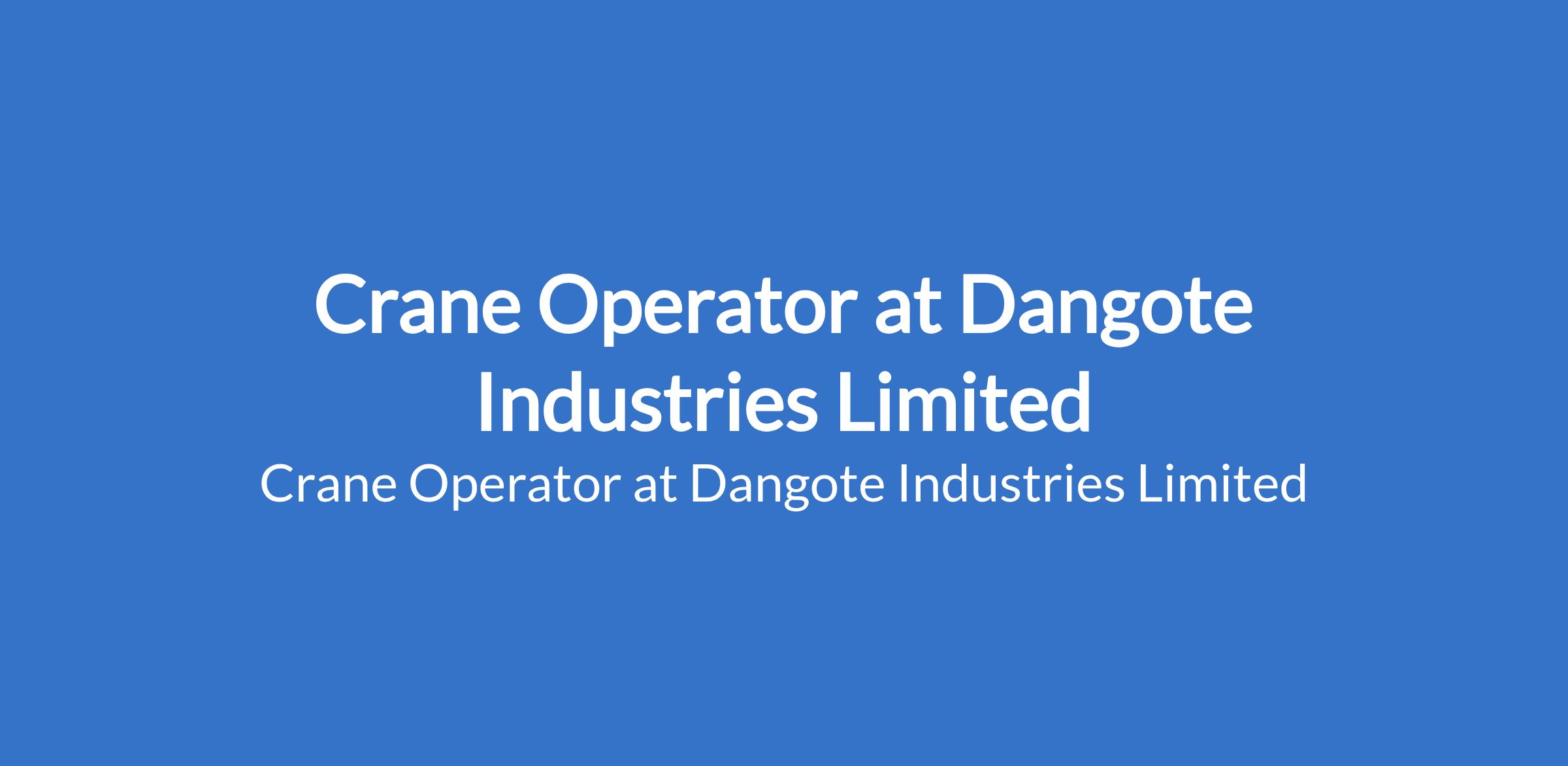 Dangote Industries Limited is recruiting to fill the position of: Crane Operator. The position is located in Ibese Plant, Ogun State. The Crane Operator is responsible for operating the crane and any other lifting equipment to lift, move, load, and position materials safely within the worksite. Interested candidates must be able to operate 135T Demag crane with manual levers.