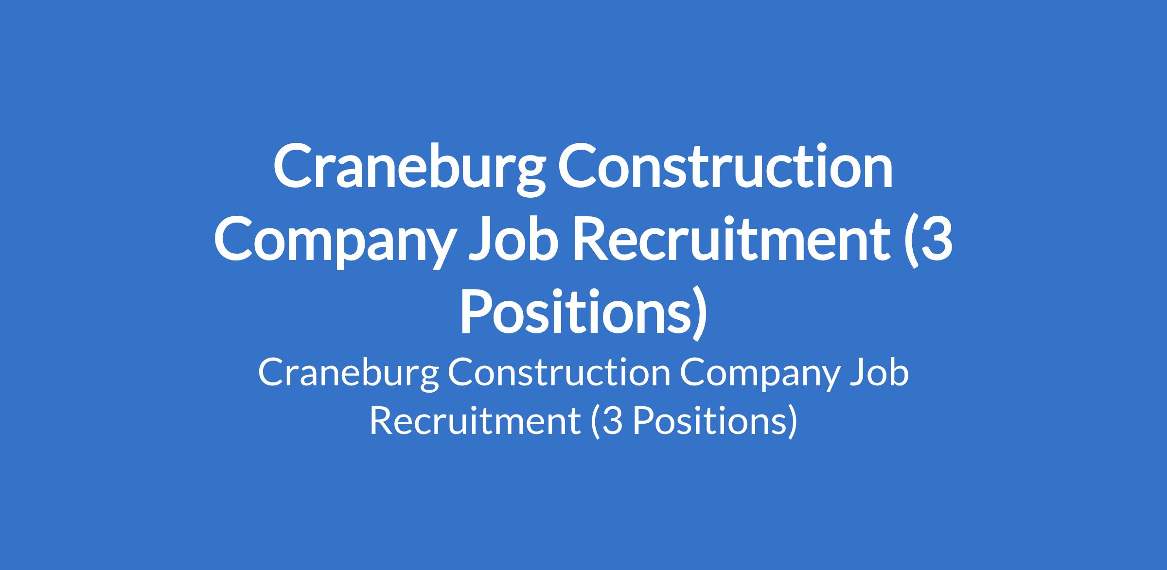 Craneburg Construction Company Job Recruitment (3 Positions)