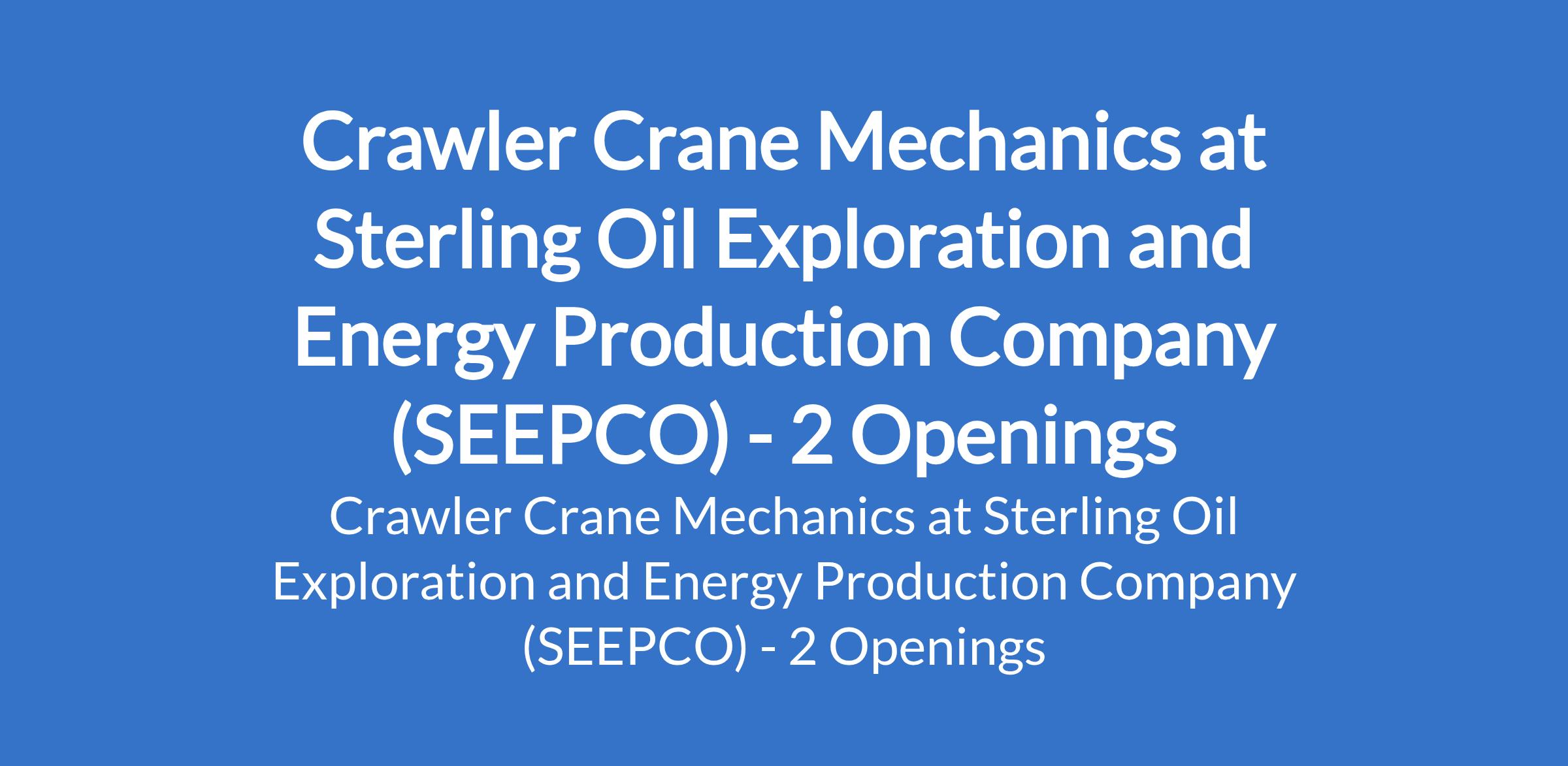 Sterling Oil Exploration and Energy Production Company (SEEPCO) is recruiting to fill the position of: Crawler Crane Mechanic. The position is located in Imo & Rivers States. Interested candidates should possess relevant qualifications with proven experience as a heavy equipment or crane mechanic and strong knowledge of diesel engines, hydraulics, electrical systems, and heavy machinery.