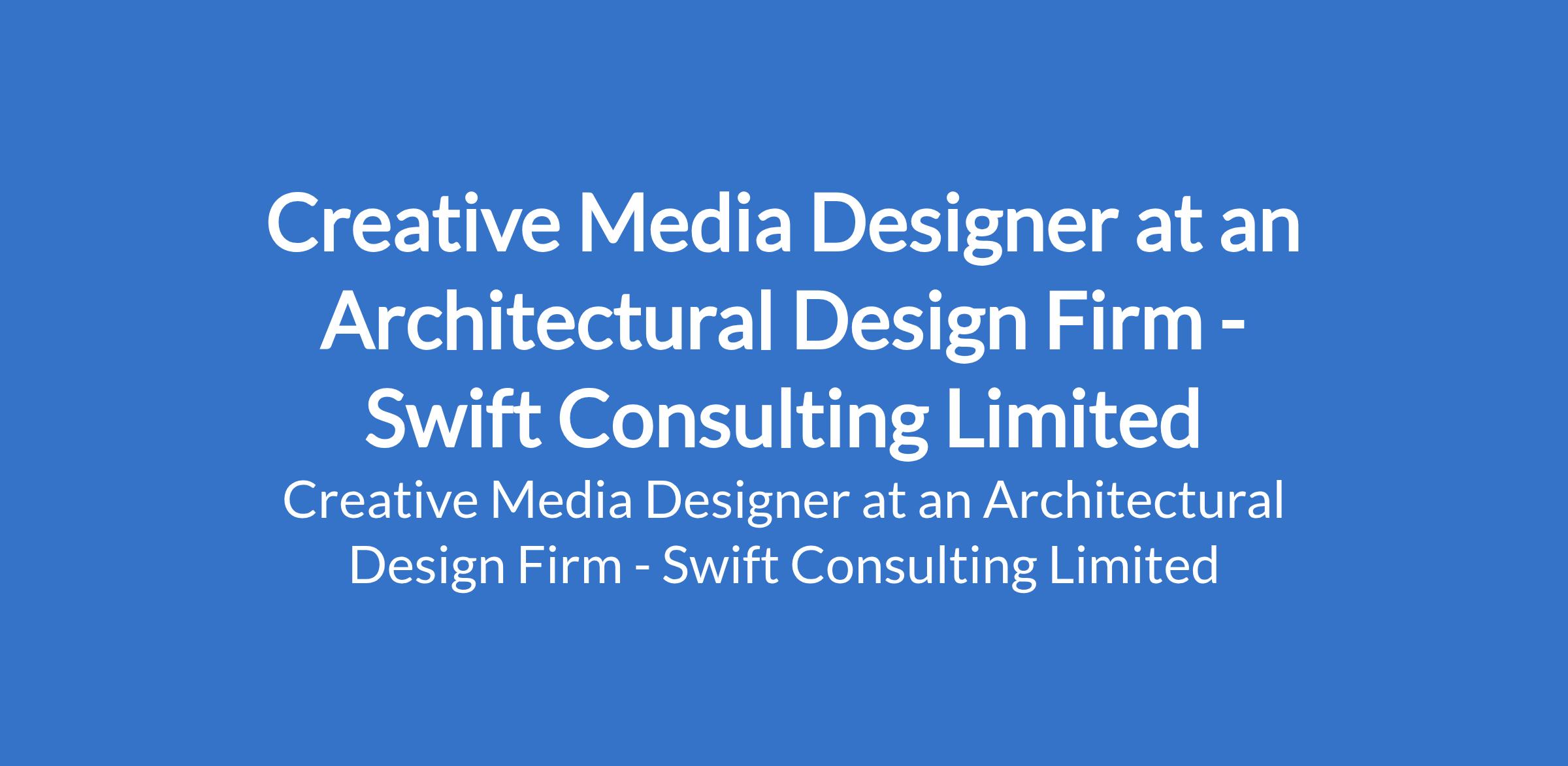 Swift Consulting Limited - Our client, an Architectural Design Firm is recruiting to fill the position of: Creative Media Designer. The position is located in Lagos State. Interested candidates should possess minimum of a Bachelor's Degree or HND in Graphic Design, Multimedia, Architecture or related fields with experience in architectural visualization and media.